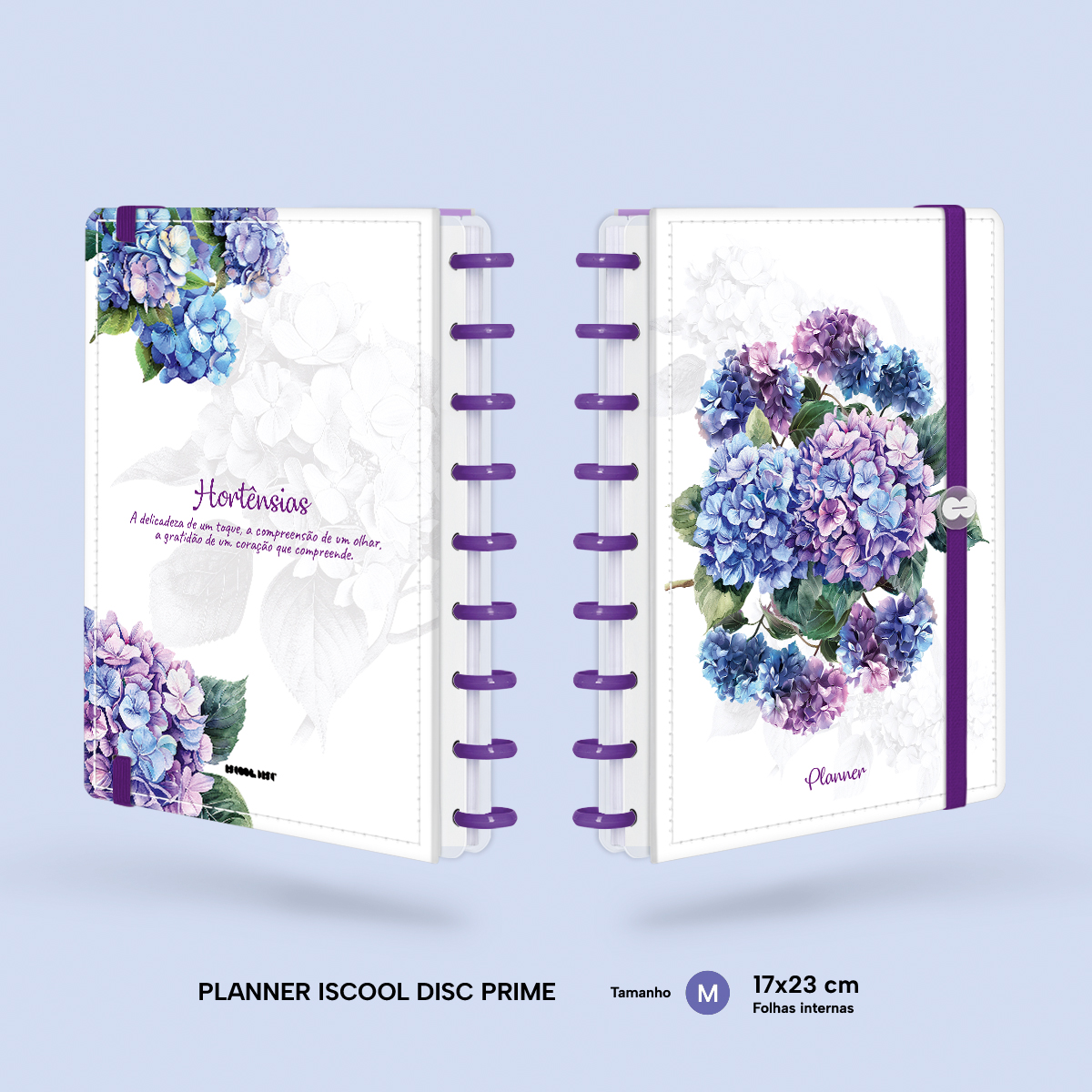 Iscool Disc Prime Planner Datado 2026 Floriografia Branco Hortênsias