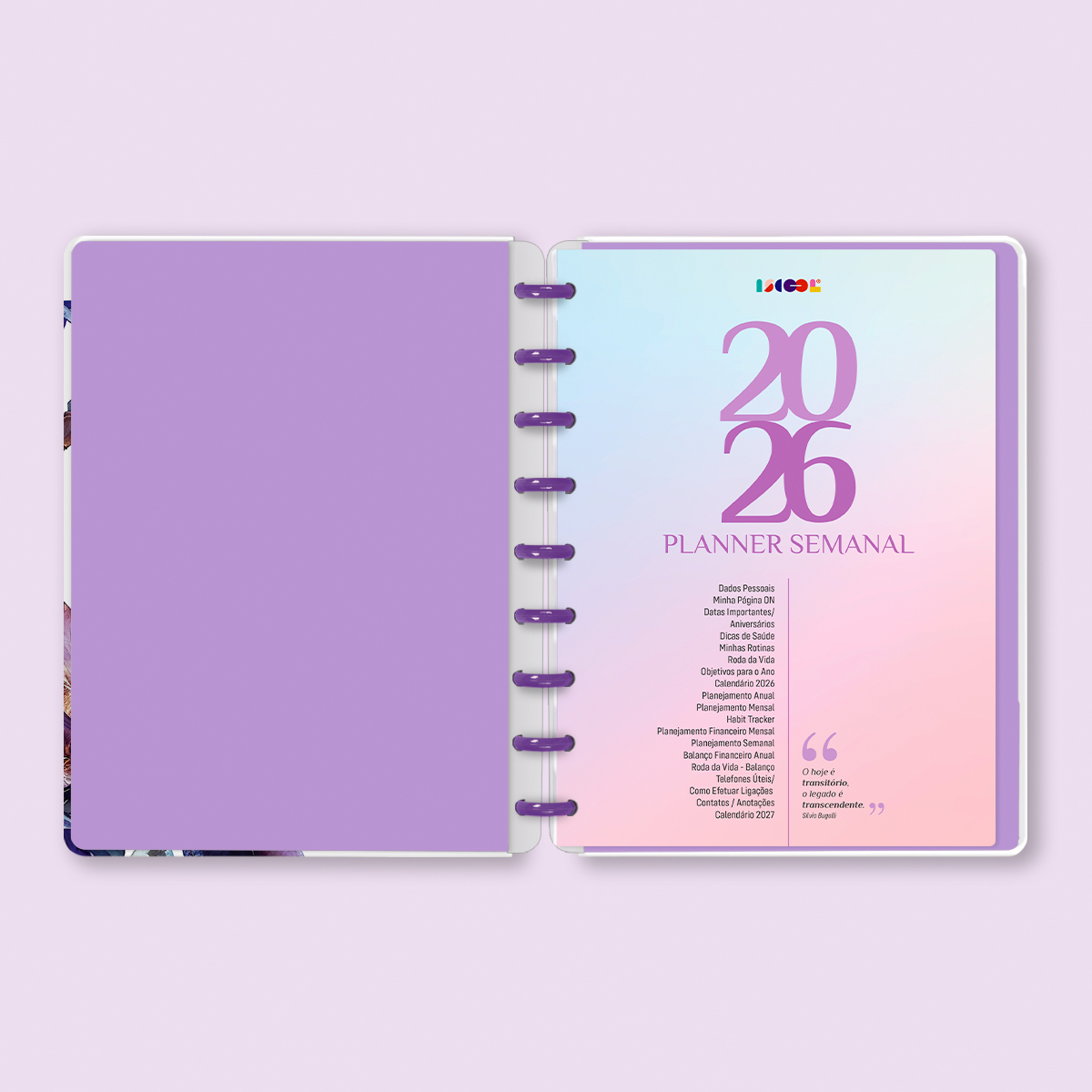 Iscool Disc Prime Planner Datado 2026 Floriografia Branco Íris