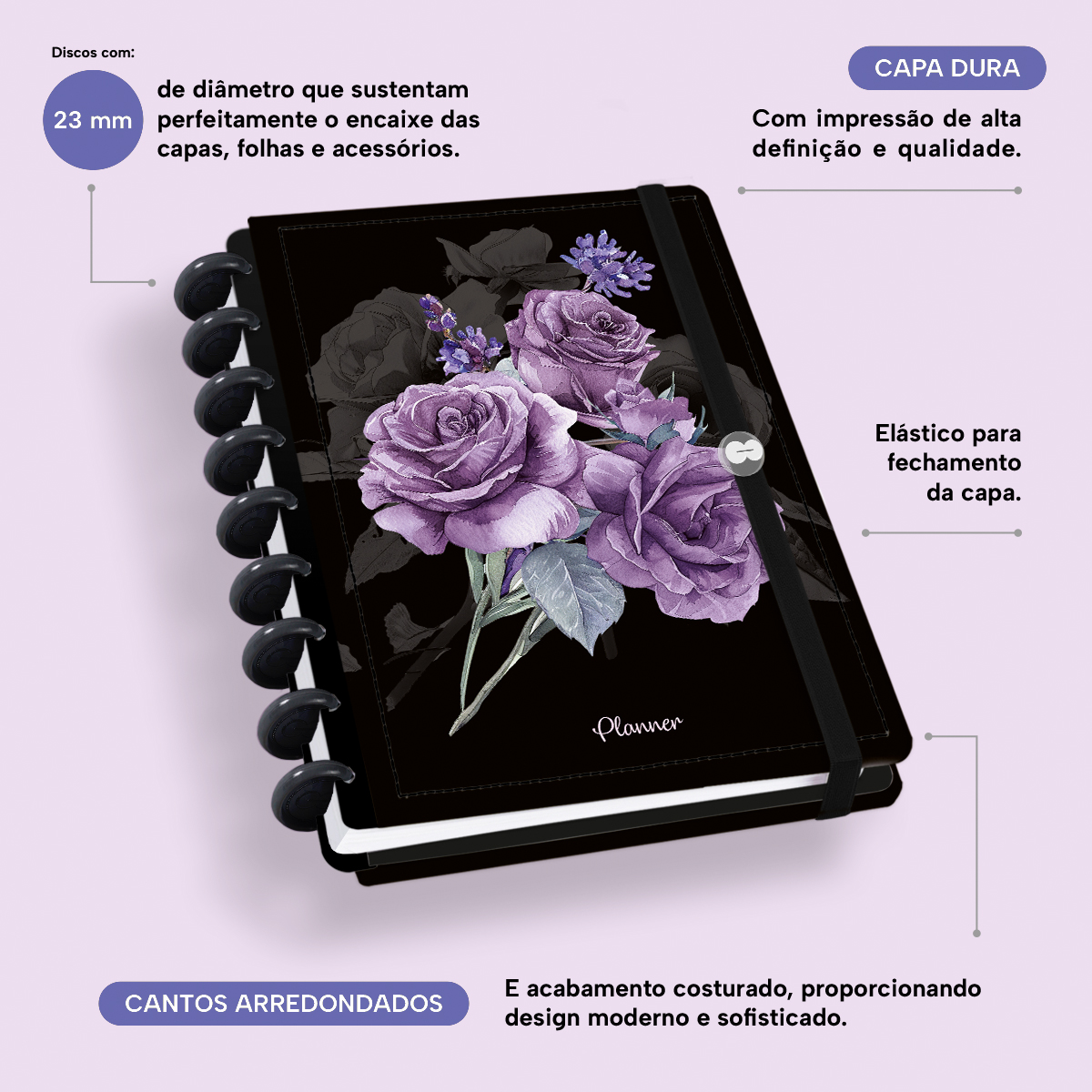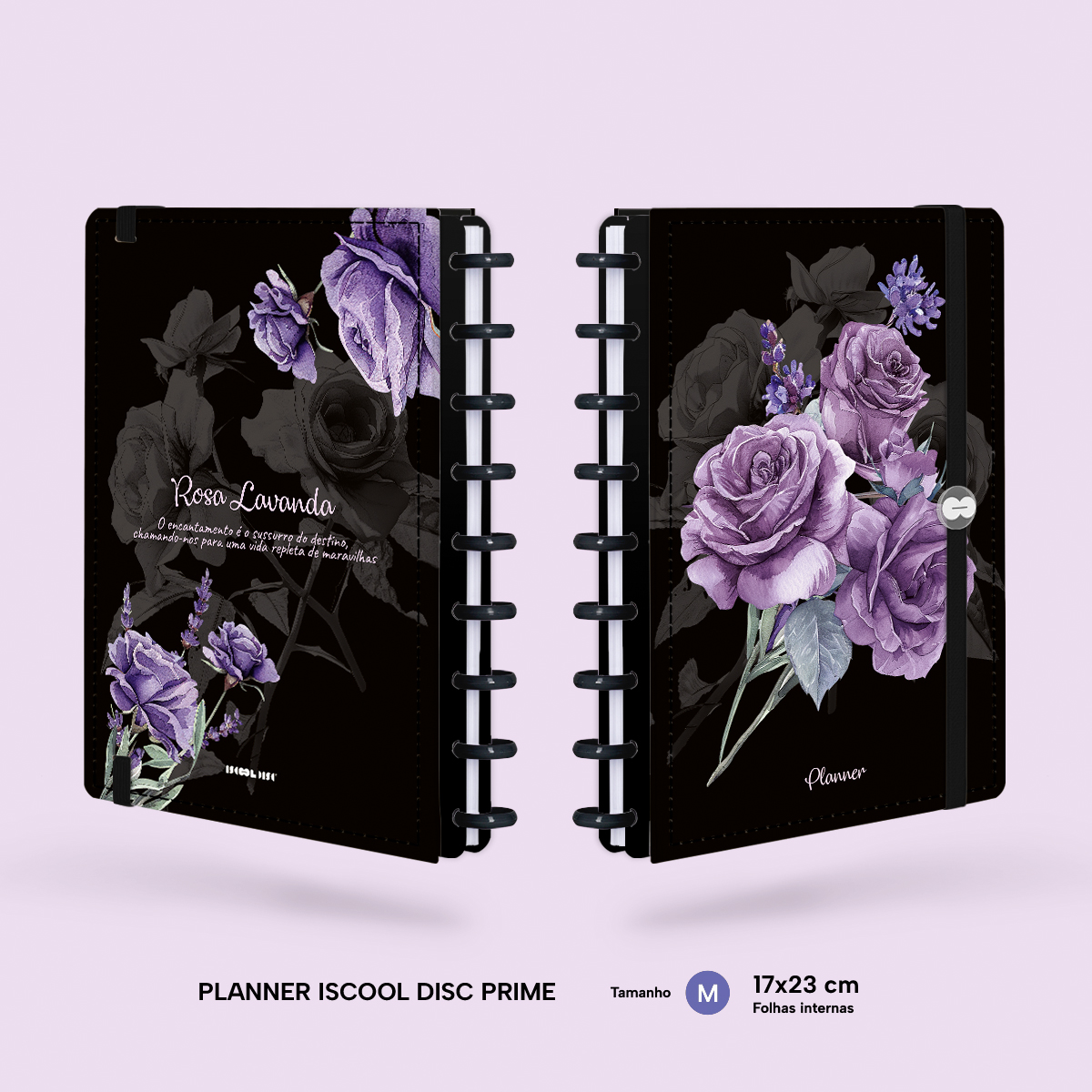Iscool Disc Prime Planner Datado 2026 Floriografia Preto Rosas Lavanda