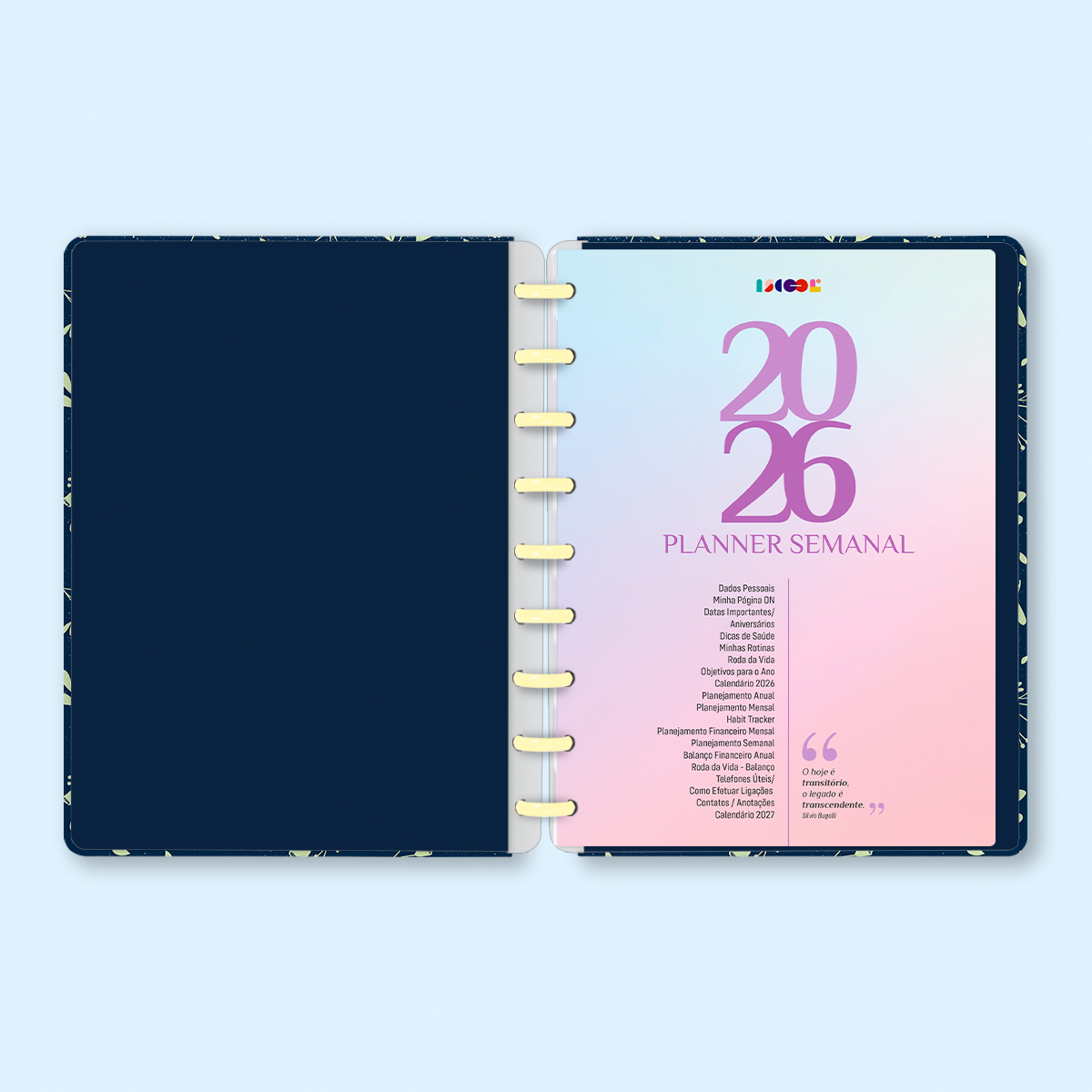 O Iscool Disc Planner Datado 2026 foi criado especialmente para ajudar você a alcançar todas as suas metas e objetivos pessoais. É um planner totalmente customizável, no qual os elementos são reposicionáveis. Você pode montá-lo como preferir, deixando sua criatividade fluir livremente.