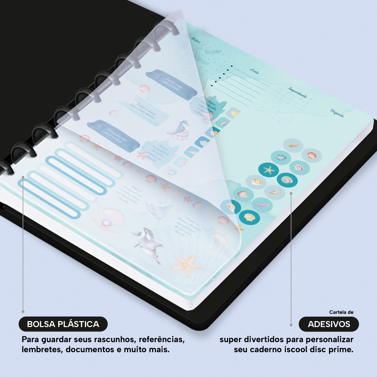 Iscool Disc Prime Planner Datado 2026 Oceania Mar de Flores Preto