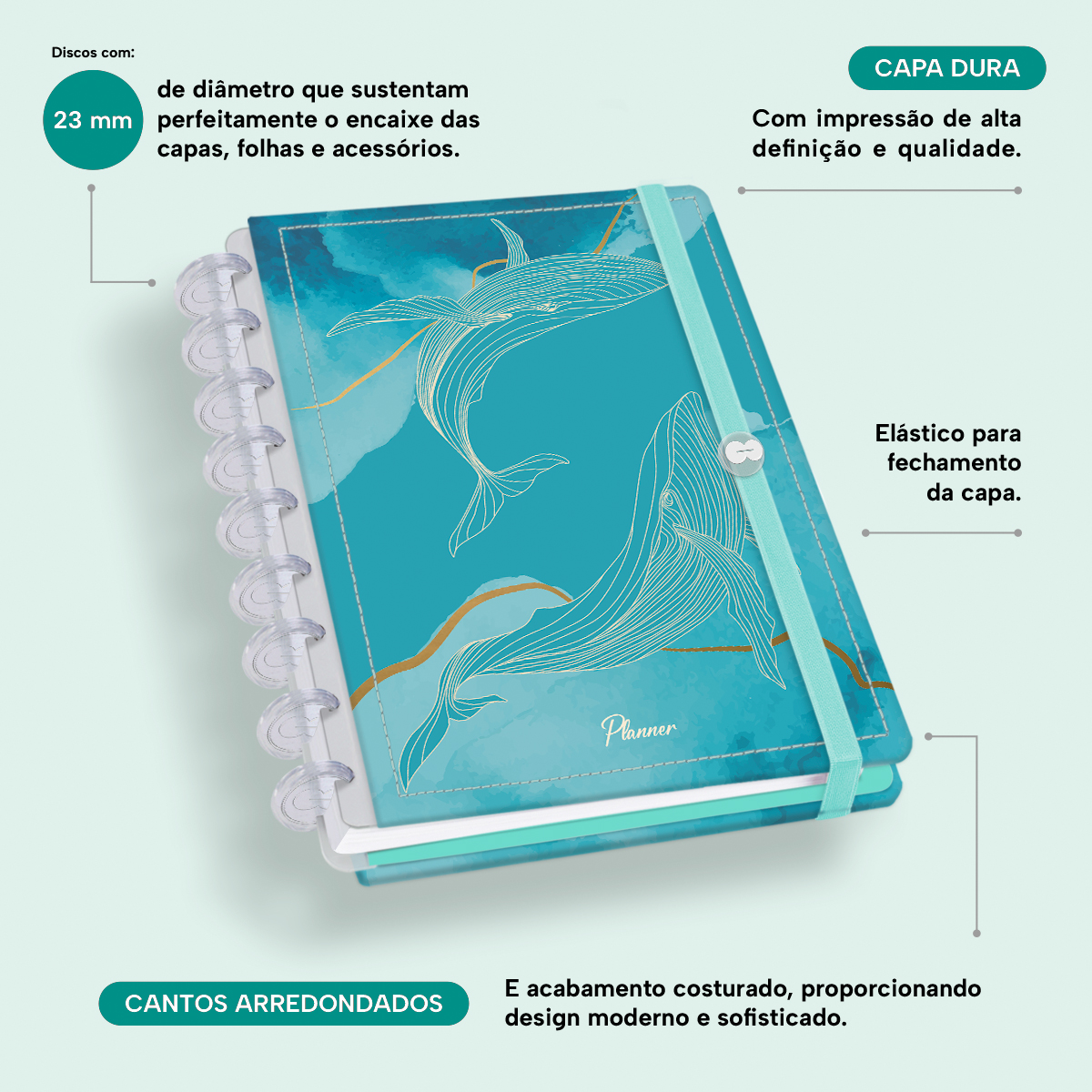 Elástico para fechamento da capa do planner.