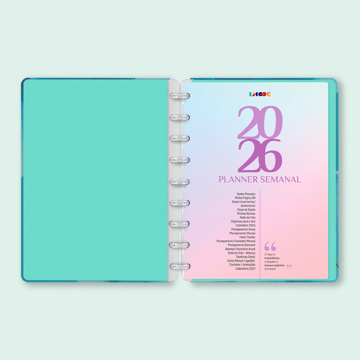 O Iscool Disc Planner Datado 2026 foi criado especialmente para ajudar você a alcançar todas as suas metas e objetivos pessoais. É um planner totalmente customizável, no qual os elementos são reposicionáveis. Você pode montá-lo como preferir, deixando sua criatividade fluir livremente.