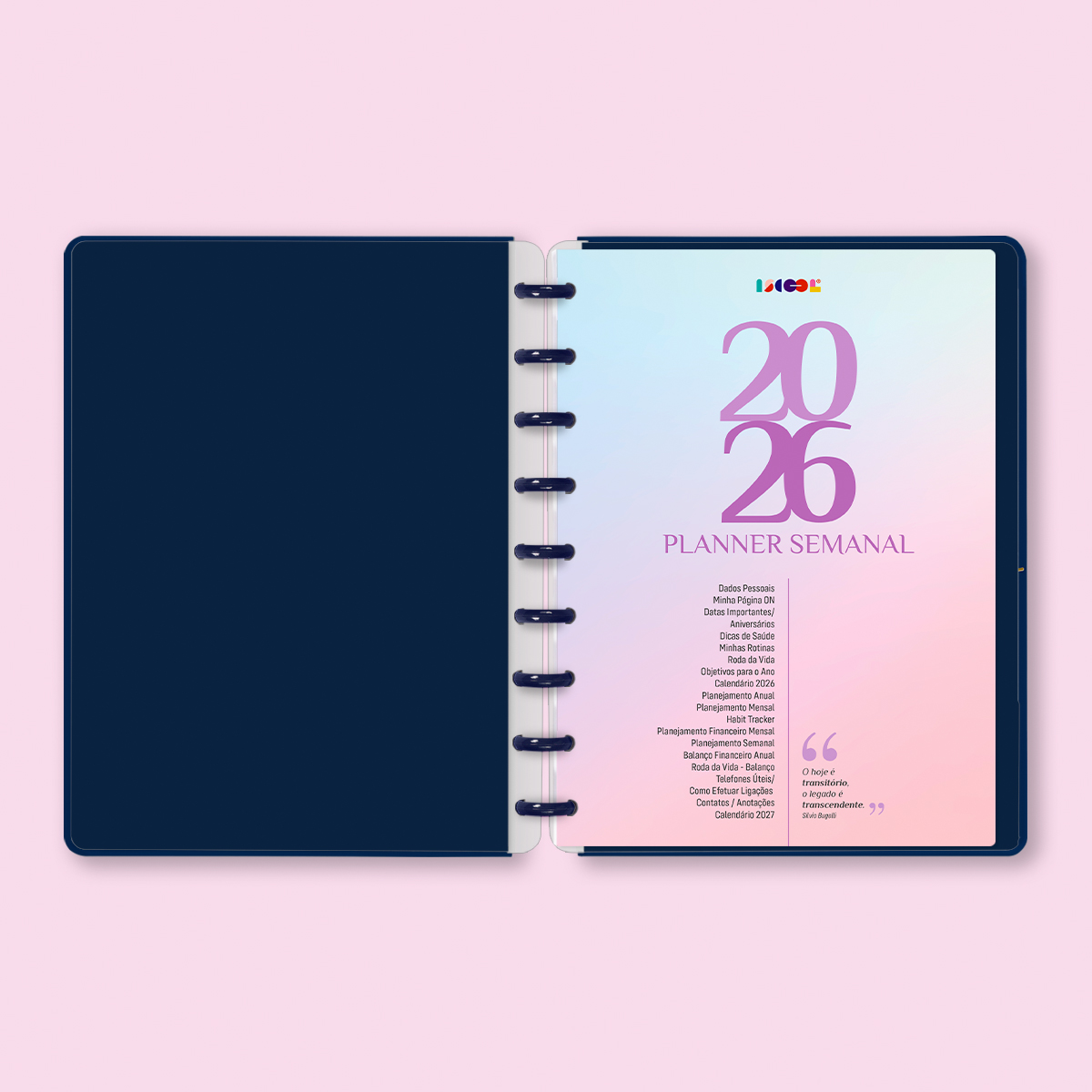 O Iscool Disc Planner Datado 2026 foi criado especialmente para ajudar você a alcançar todas as suas metas e objetivos pessoais. É um planner totalmente customizável, no qual os elementos são reposicionáveis. Você pode montá-lo como preferir, deixando sua criatividade fluir livremente.