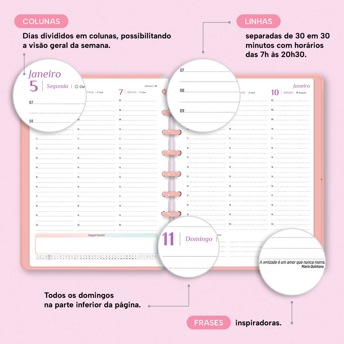 O Iscool Disc Planner Datado 2026 foi criado especialmente para ajudar você a alcançar todas as suas metas e objetivos pessoais. É um planner totalmente customizável, no qual os elementos são reposicionáveis. Você pode montá-lo como preferir, deixando sua criatividade fluir livremente.