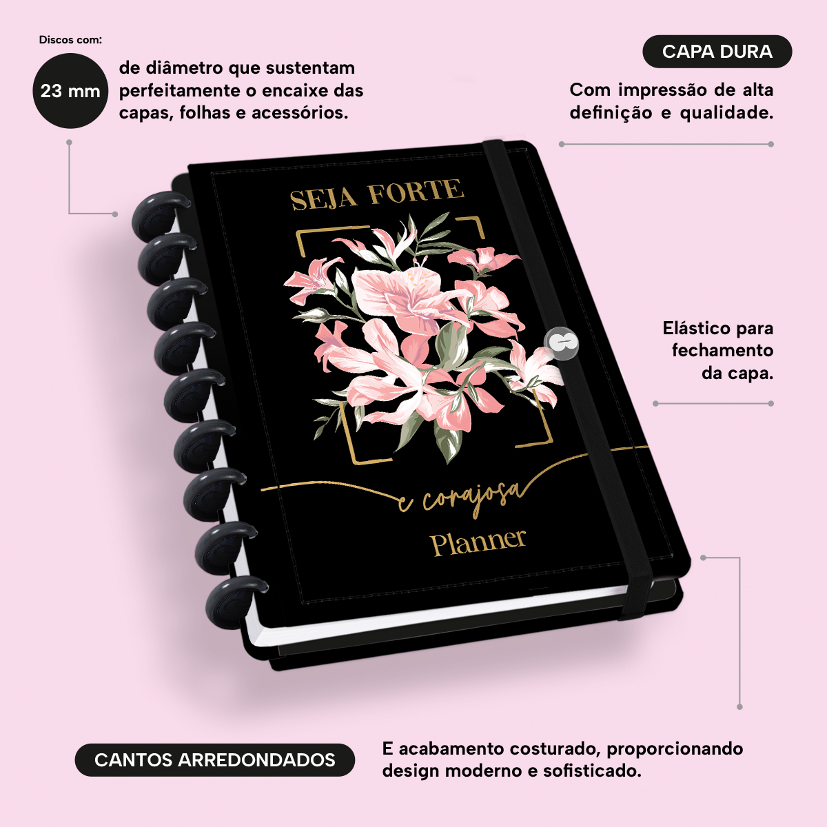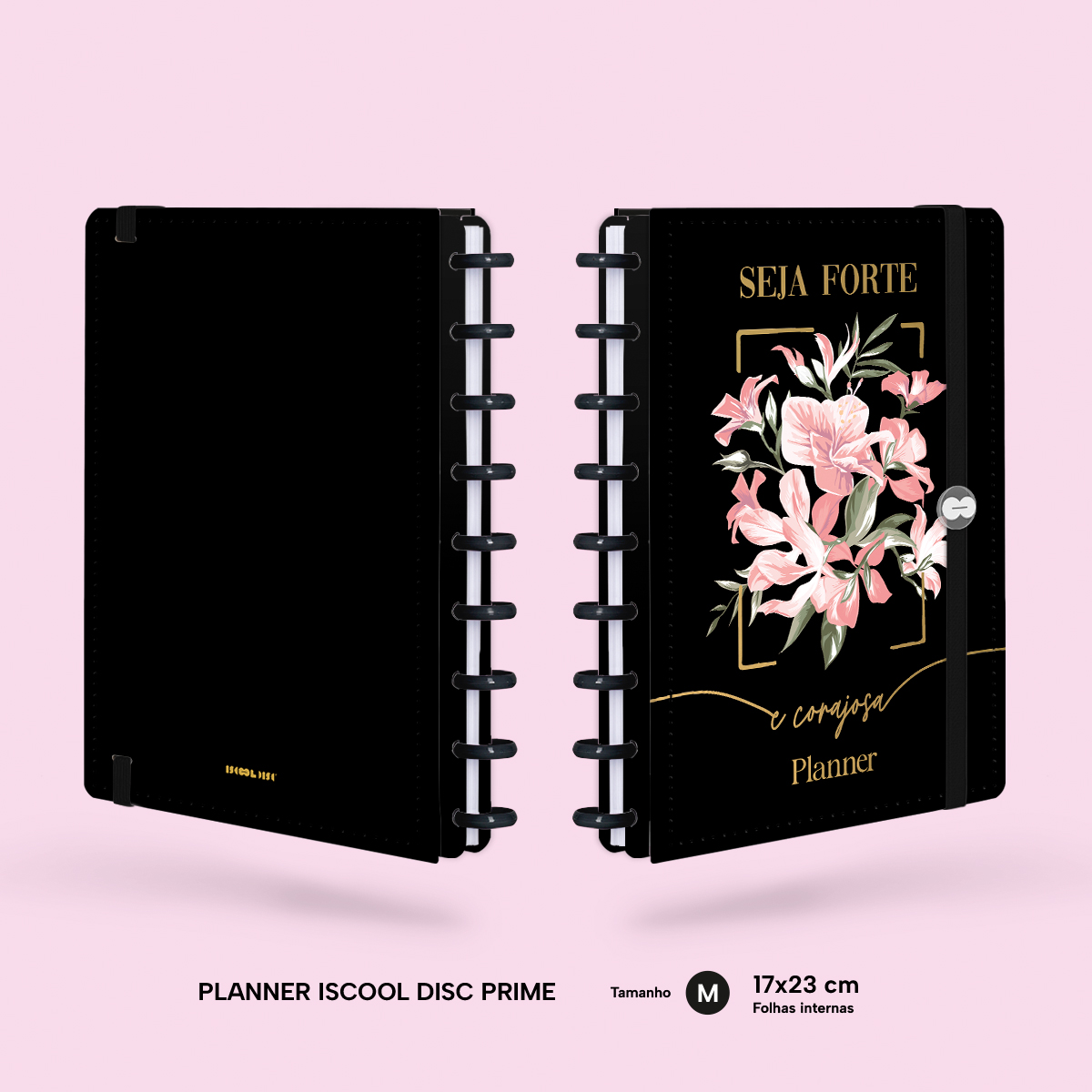 Iscool Disc Prime Planner Datado 2026 Opulence Seja Forte e Corajosa Preto