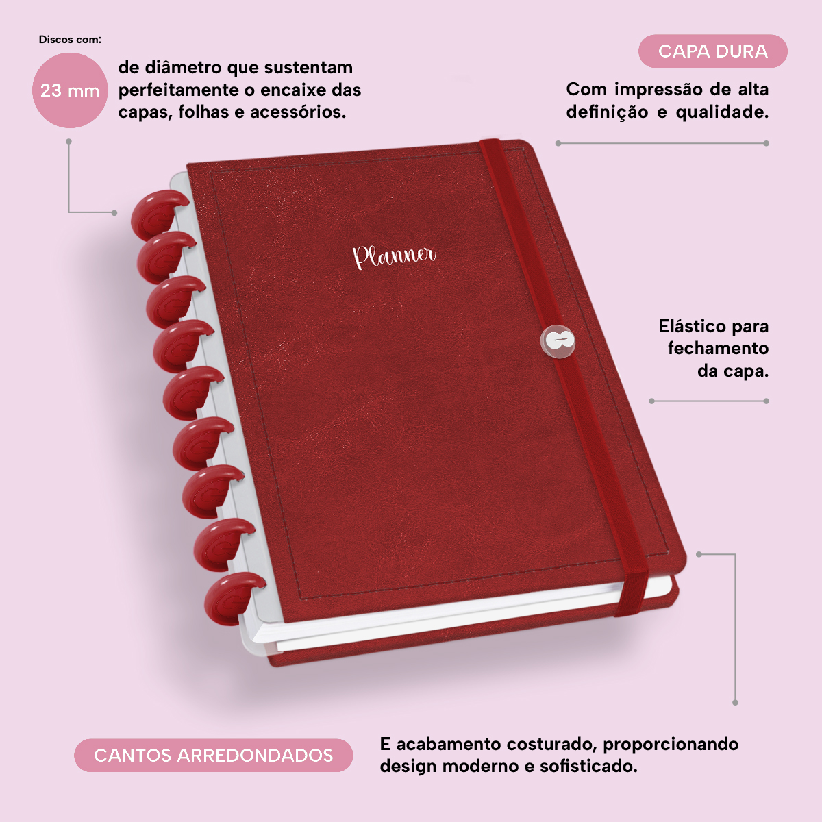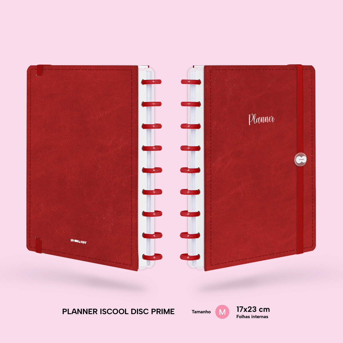 Iscool Disc Prime Planner Datado 2026 Solid Touch Couro Vermelho