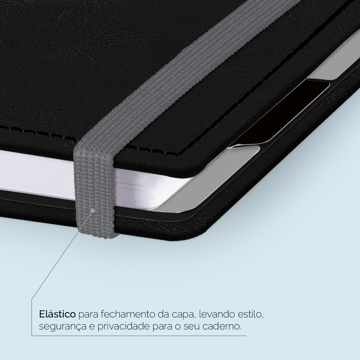 Elástico para fechamento da capa do caderno.