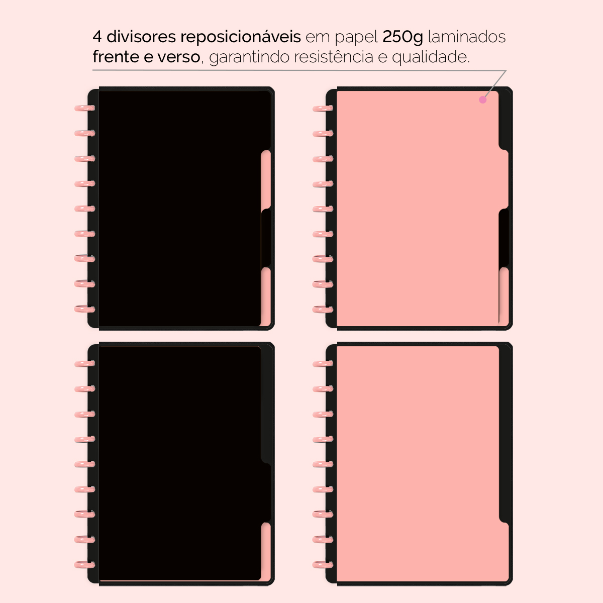 A capa é dura com impressão digital de alta definição, acompanha 6 lindas divisórias que você pode colocar em qualquer local do caderno, funcionando como o guia perfeito para sua organização.
