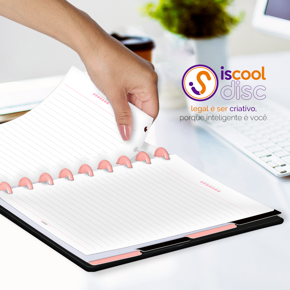 Com furos no formato de “cogumelo”, você poderá dar um “up” em seu caderno com nossos refis, além de ser compatível com outros fabricantes de cadernos de discos.
