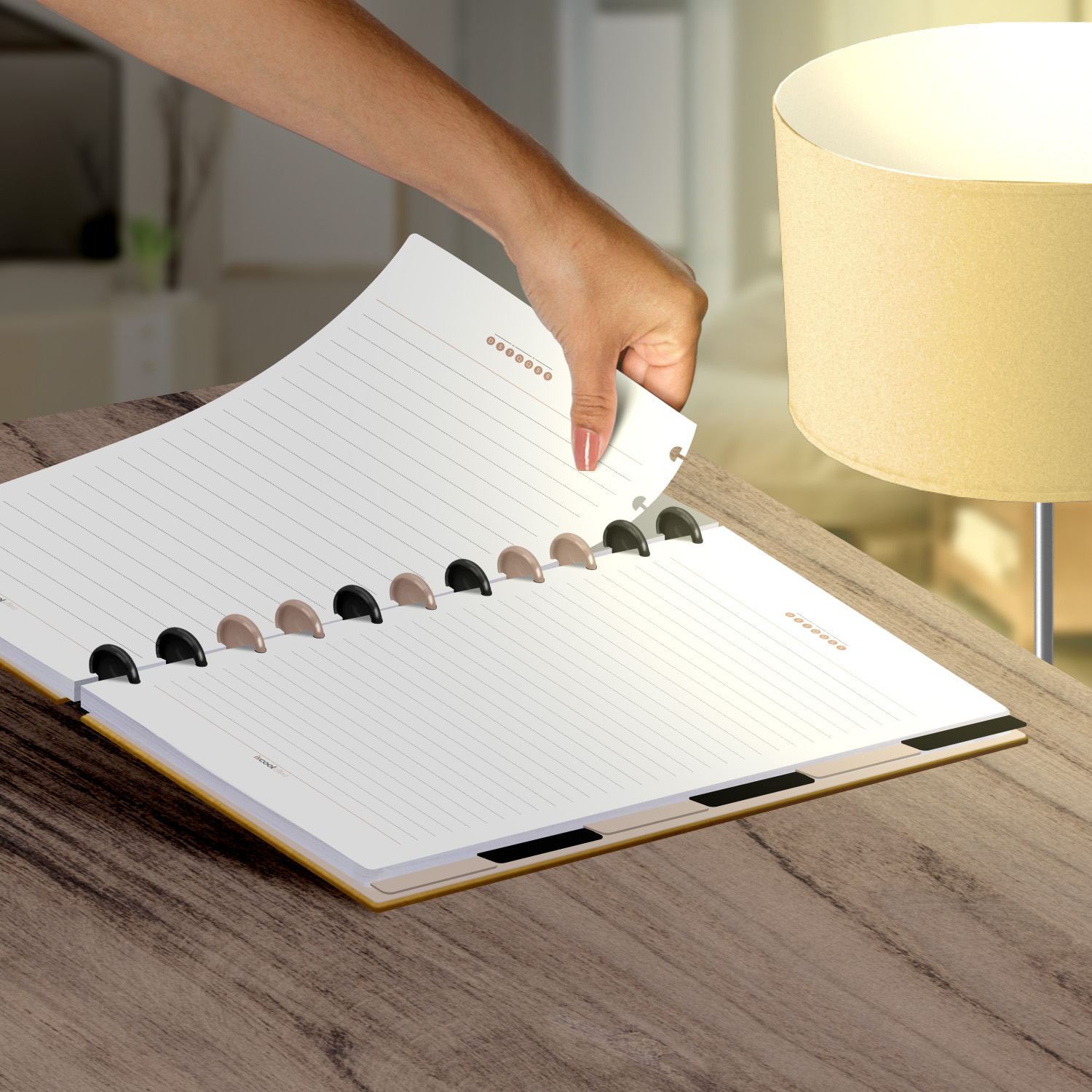 Com furos no formato de “cogumelo”, você poderá dar um “up” em seu caderno com nossos refis, além de ser compatível com outros fabricantes de cadernos de discos.