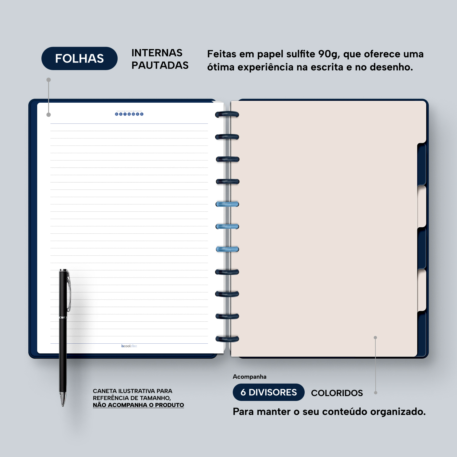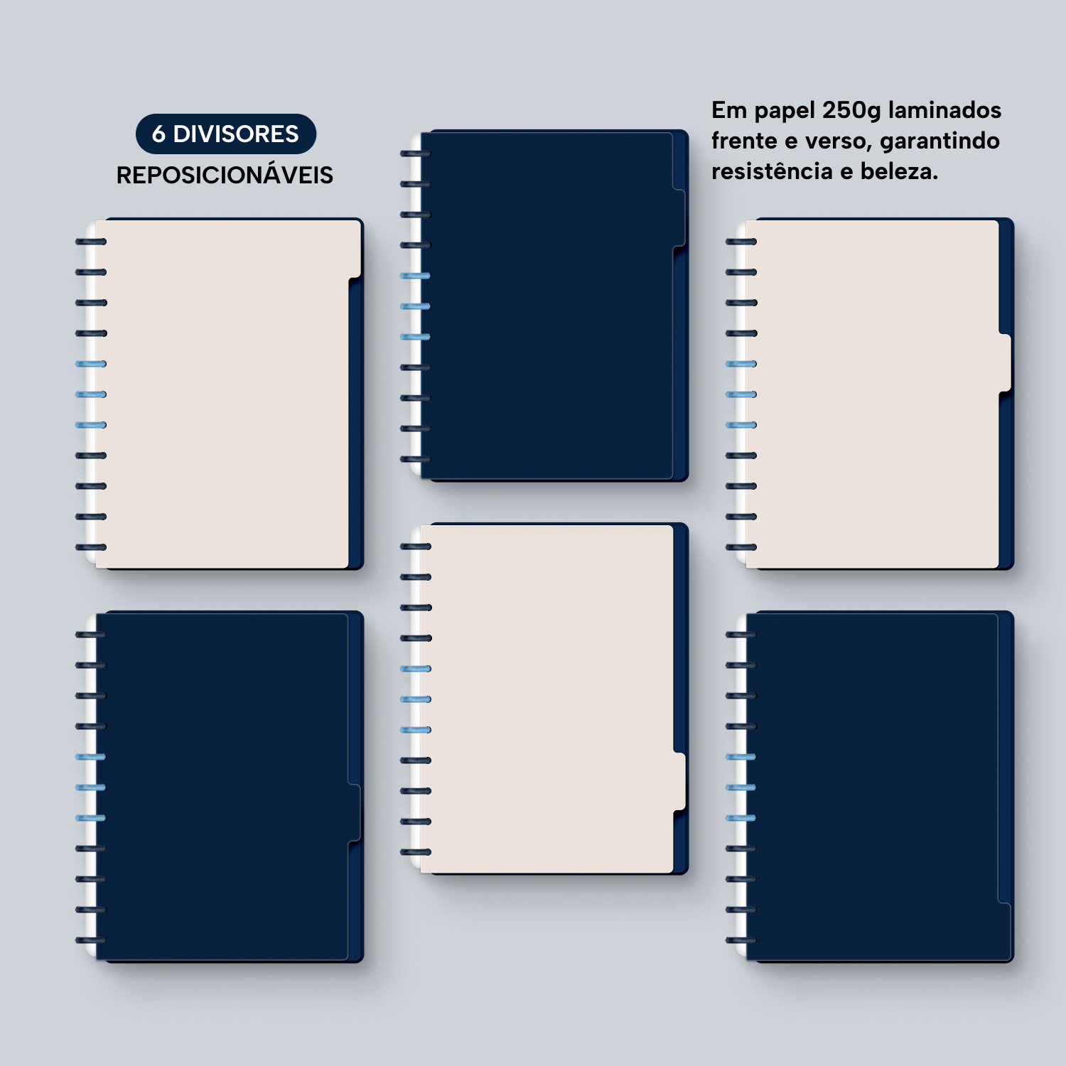 A capa é dura, com impressão digital de alta definição, e acompanha 6 lindas divisórias que você pode colocar em qualquer local do caderno, funcionando como o guia perfeito para sua organização.