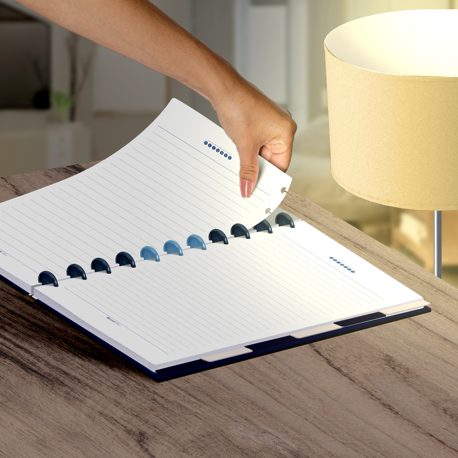 Com furos no formato de “cogumelo”, você poderá dar um “up” em seu caderno com nossos refis, além de ser compatível com outros fabricantes de cadernos de discos.