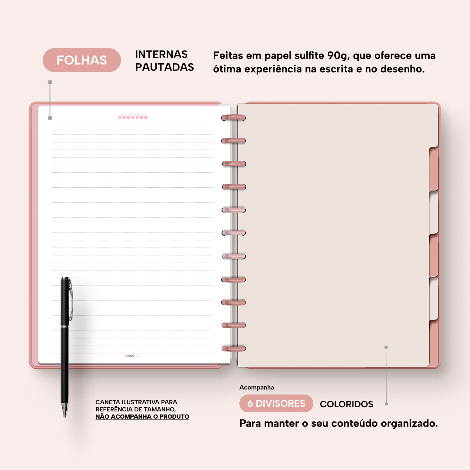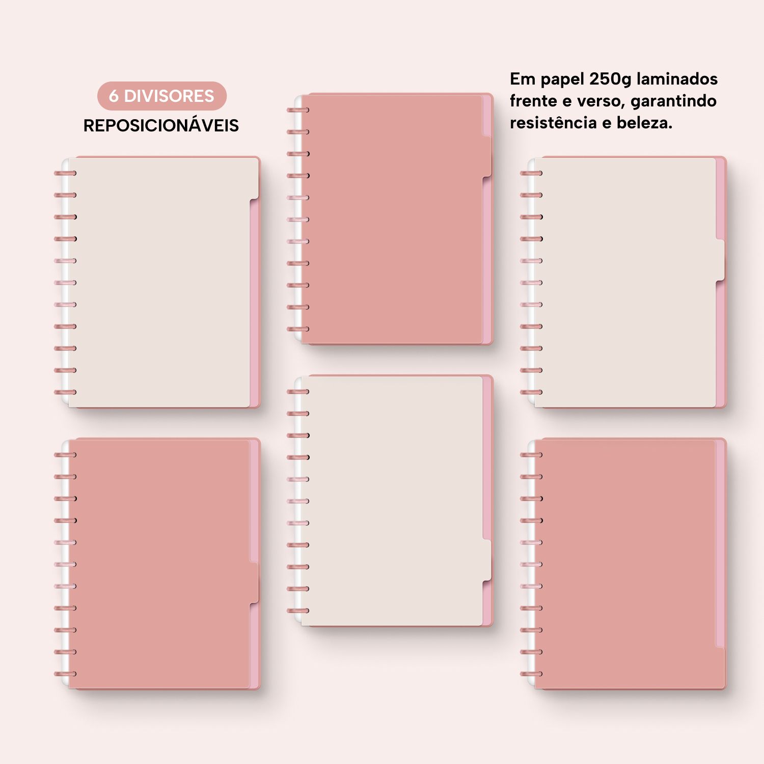 A capa é dura, com impressão digital de alta definição, e acompanha 6 lindas divisórias que você pode colocar em qualquer local do caderno, funcionando como o guia perfeito para sua organização.