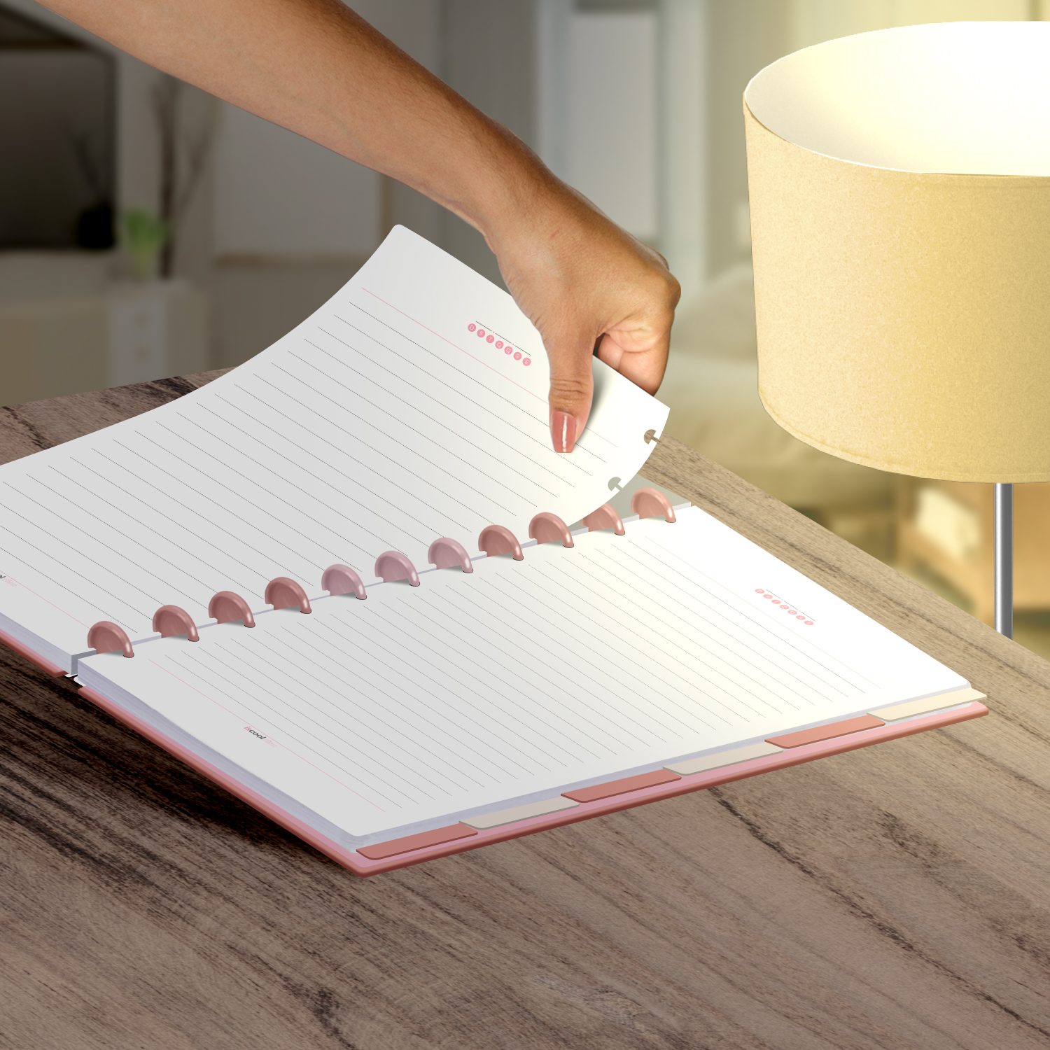 Com furos no formato de “cogumelo”, você poderá dar um “up” em seu caderno com nossos refis, além de ser compatível com outros fabricantes de cadernos de discos.