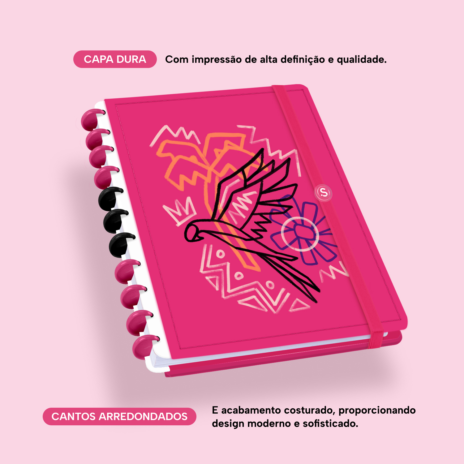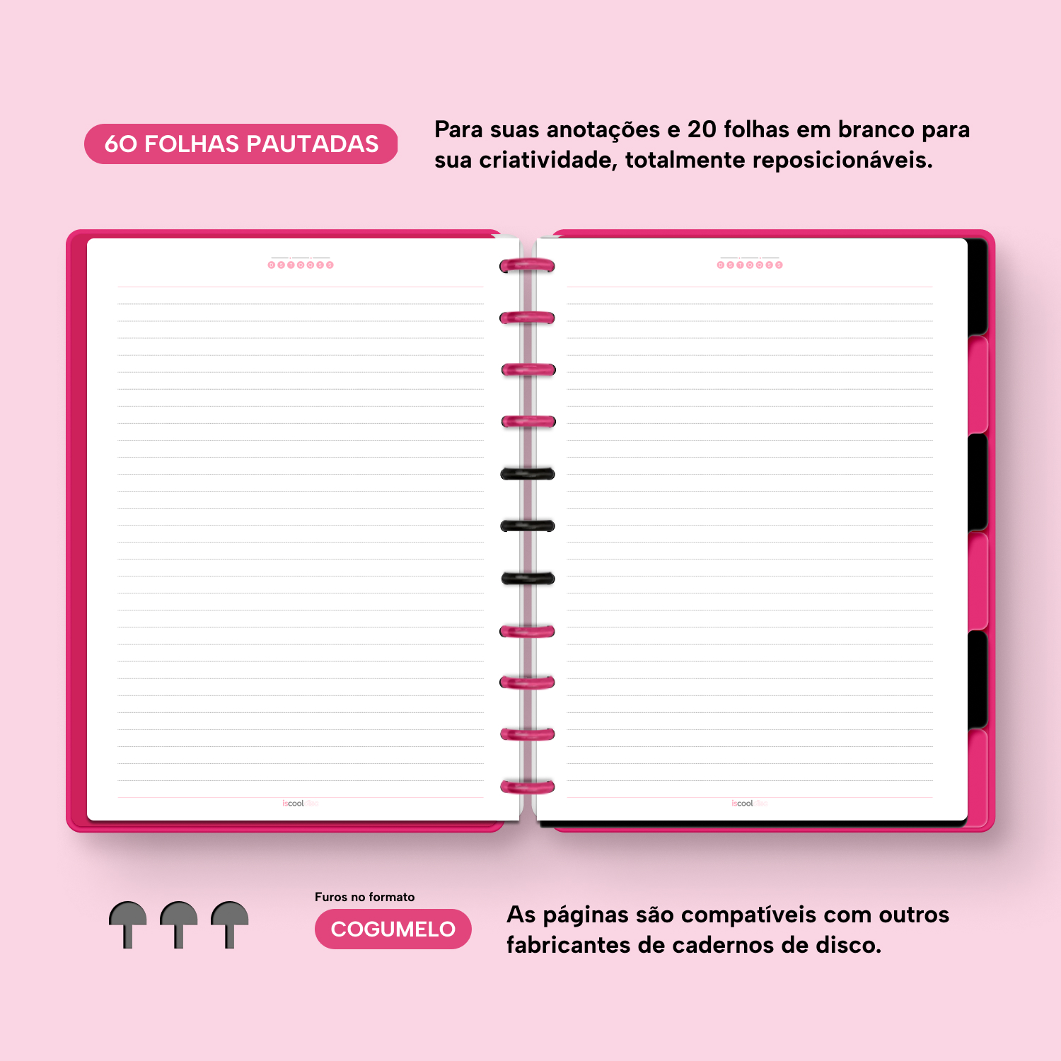 A capa é dura, com impressão digital de alta definição, e acompanha 6 lindas divisórias que você pode colocar em qualquer local do caderno, funcionando como o guia perfeito para sua organização.