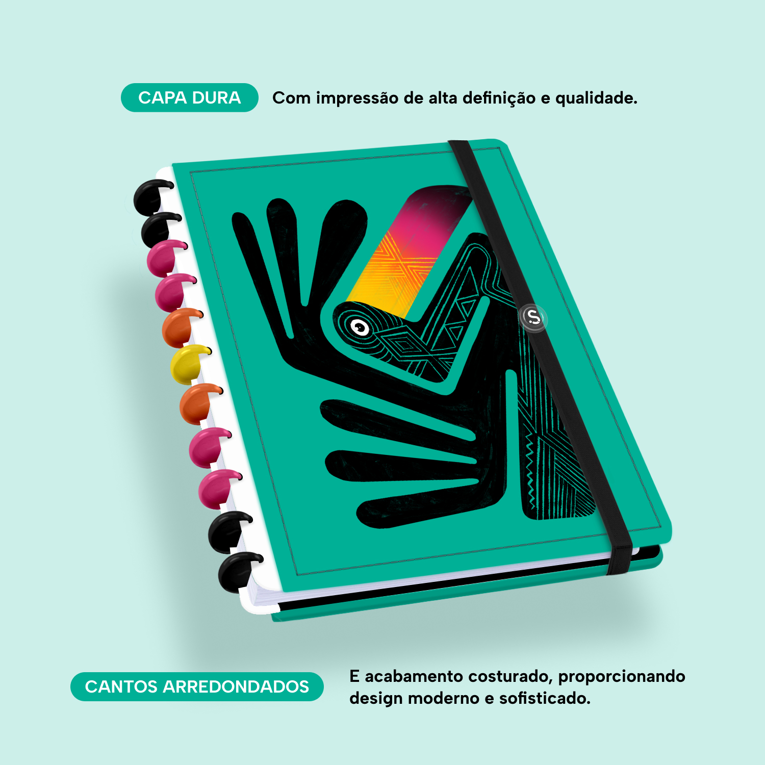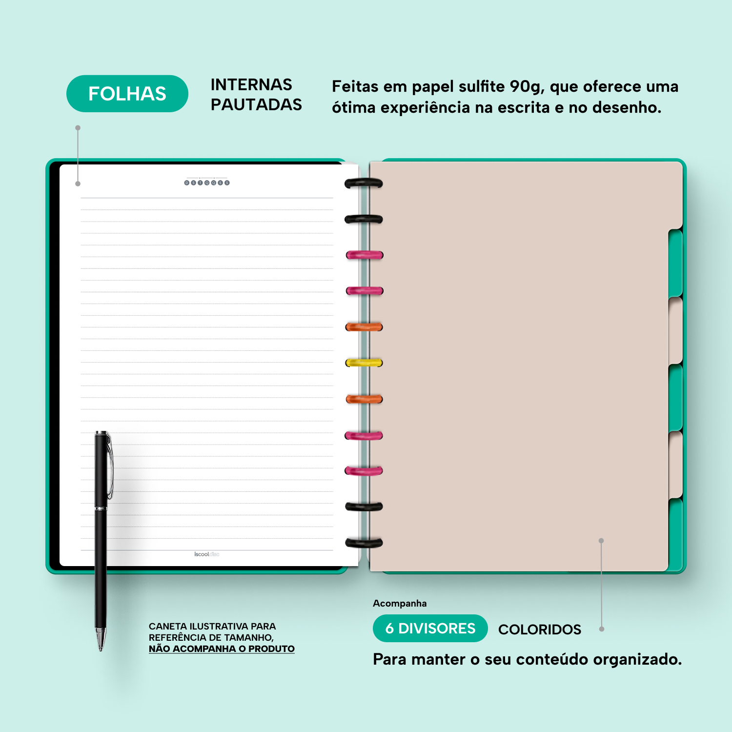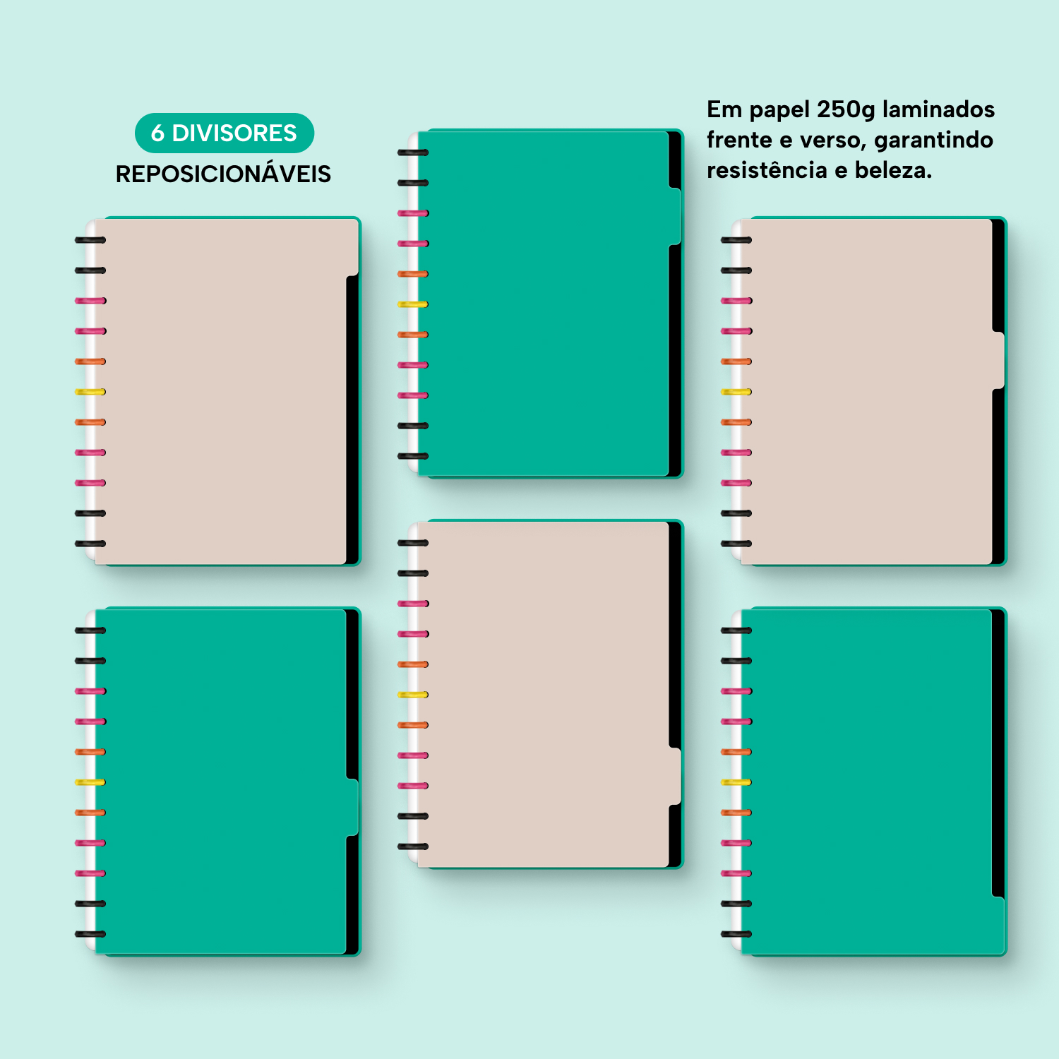 A capa é dura, com impressão digital de alta definição, e acompanha 6 lindas divisórias que você pode colocar em qualquer local do caderno, funcionando como o guia perfeito para sua organização.