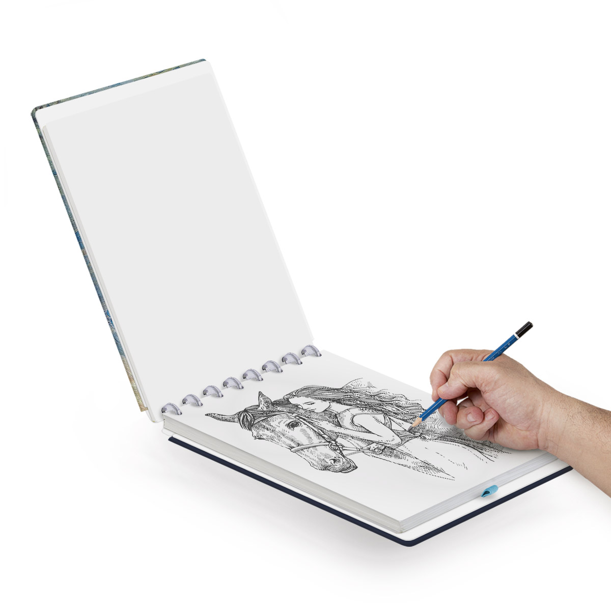 A capa dura do Sketchbook é revestida com laminação BOPP, dando assim um toque sofisticado e um visual com estilo único. Ela é impressa com tecnologia digital UV de alta definição de imagens, onde os detalhes são reproduzidos com riqueza e vivacidade!