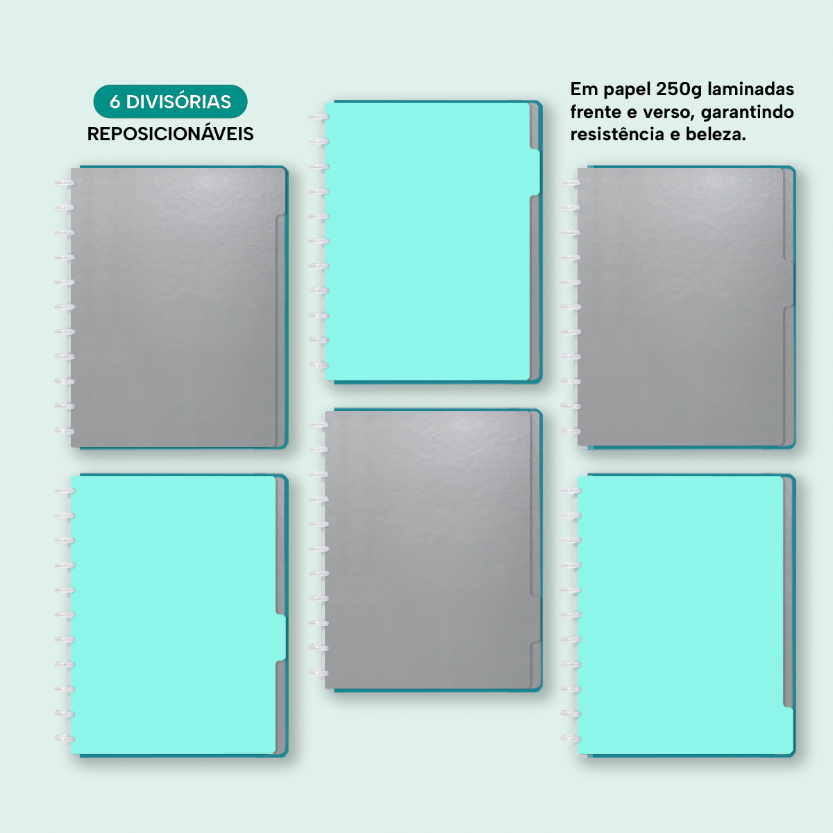 A capa é dura com impressão digital de alta definição, acompanha 6 lindas divisórias que você pode colocar em qualquer local do caderno, funcionando como o guia perfeito para sua organização.