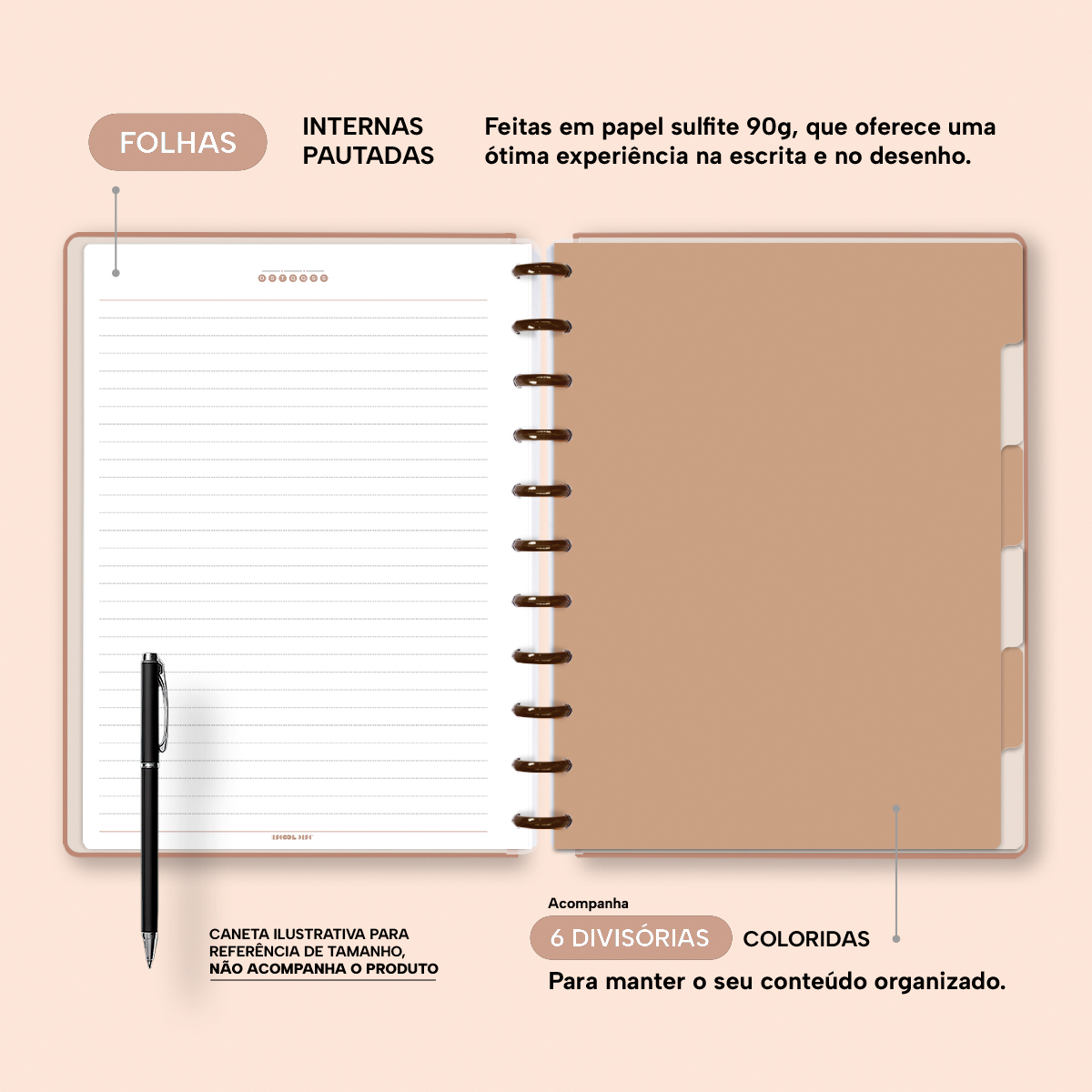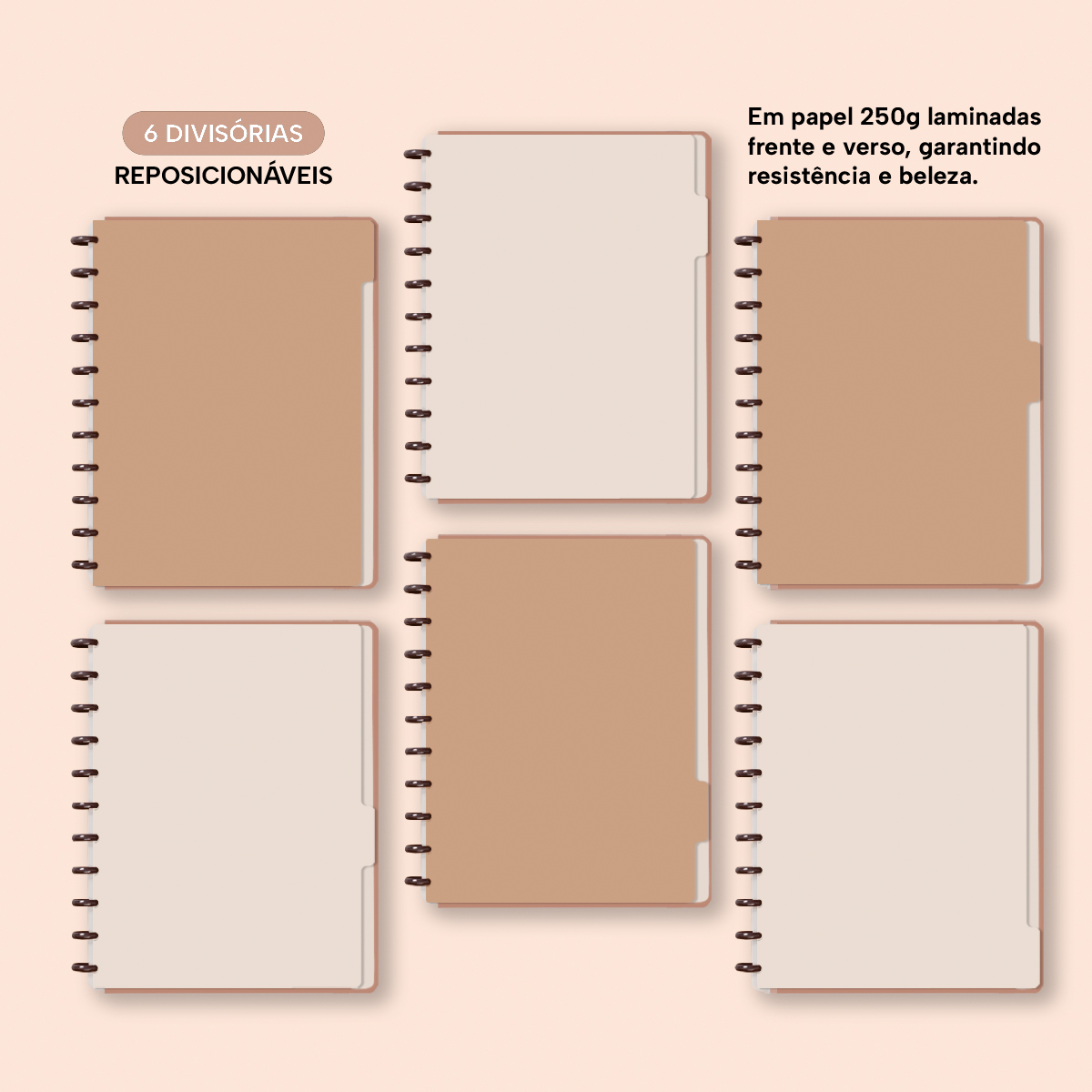 A capa é dura com impressão digital de alta definição, acompanha 6 lindas divisórias que você pode colocar em qualquer local do caderno, funcionando como o guia perfeito para sua organização.