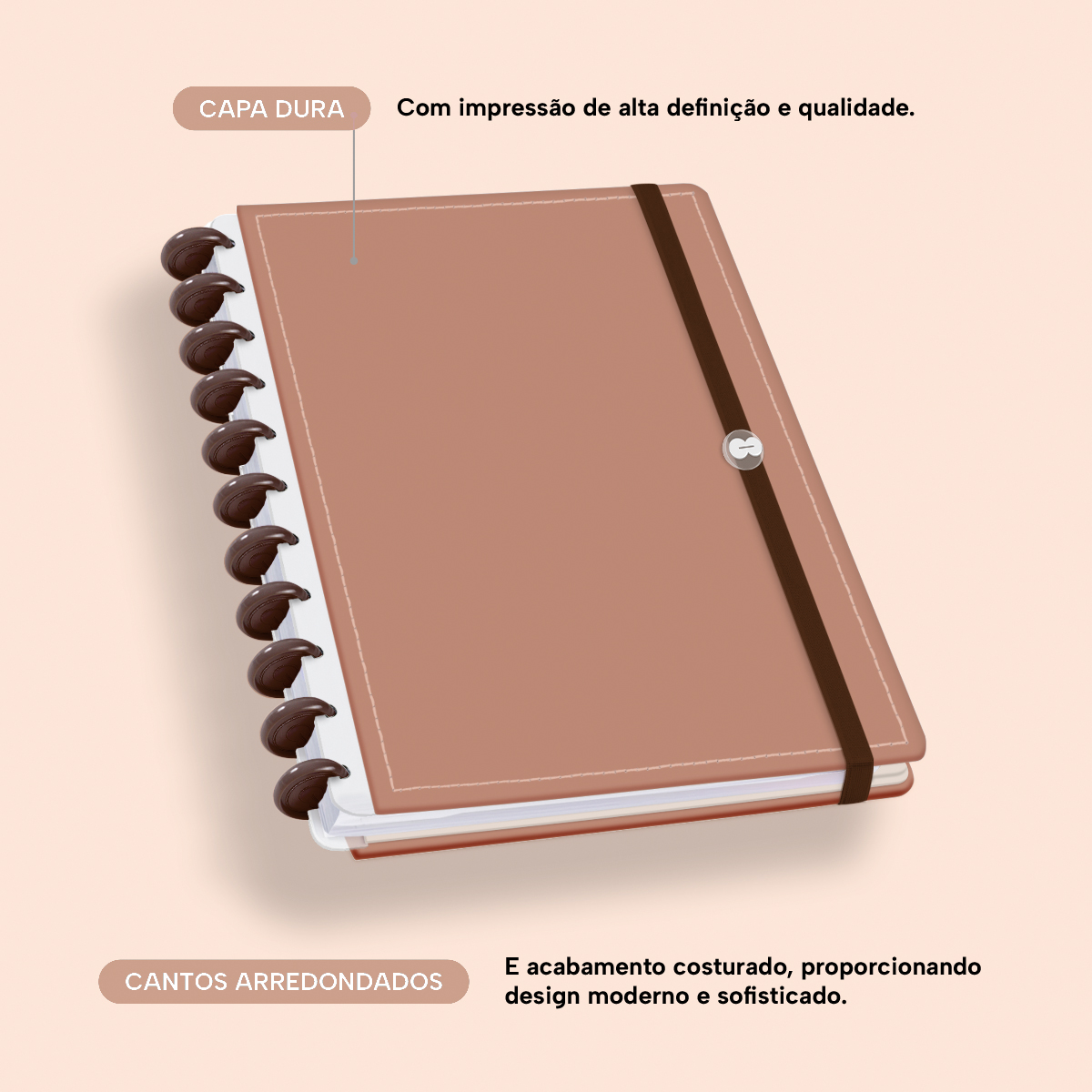 Um caderno totalmente customizável, no qual os elementos são reposicionáveis. Você pode montá-lo como preferir, deixando rolar solta toda sua criatividade.