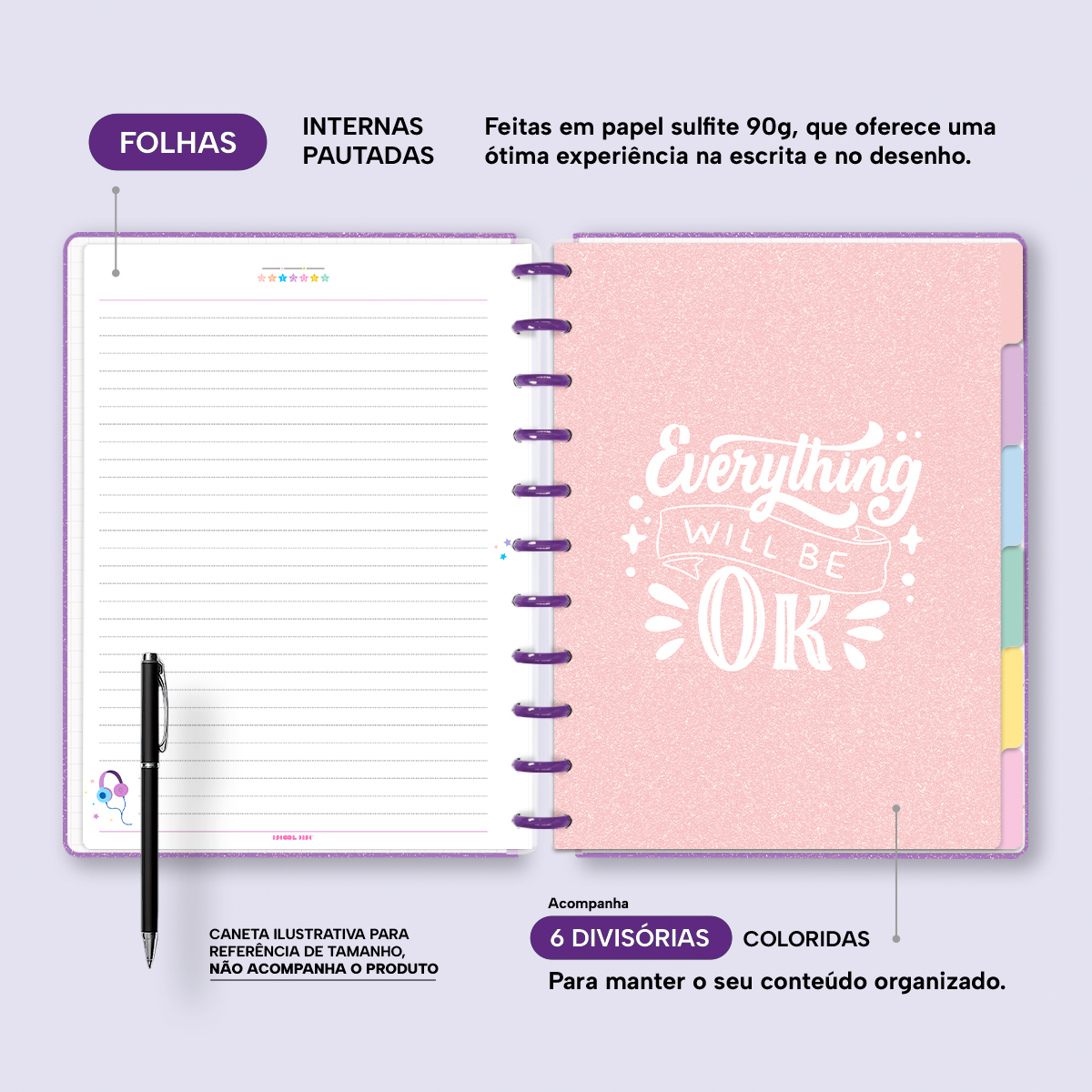 A capa é dura com impressão digital de alta definição, acompanha 6 lindas divisórias que você pode colocar em qualquer local do caderno, funcionando como o guia perfeito para sua organização.