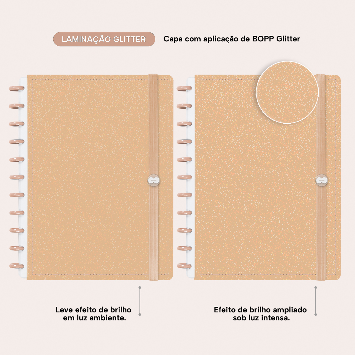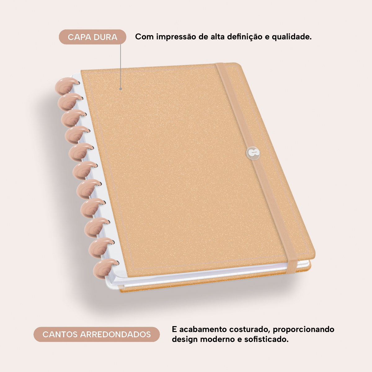 Um caderno totalmente customizável, no qual os elementos são reposicionáveis. Você pode montá-lo como preferir, deixando rolar solta toda sua criatividade.