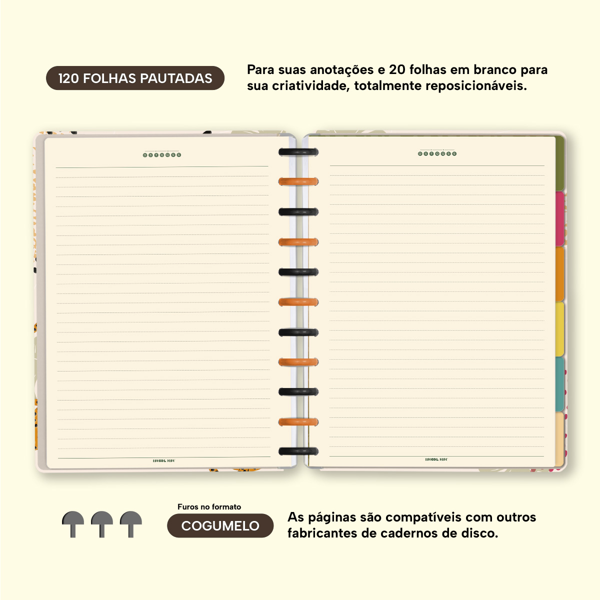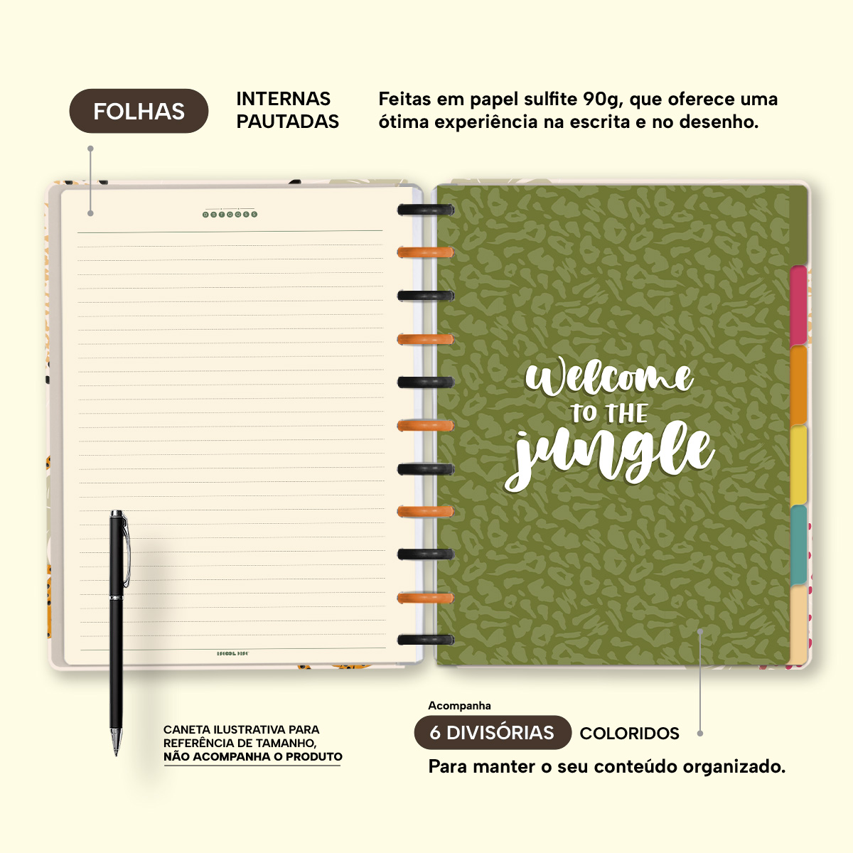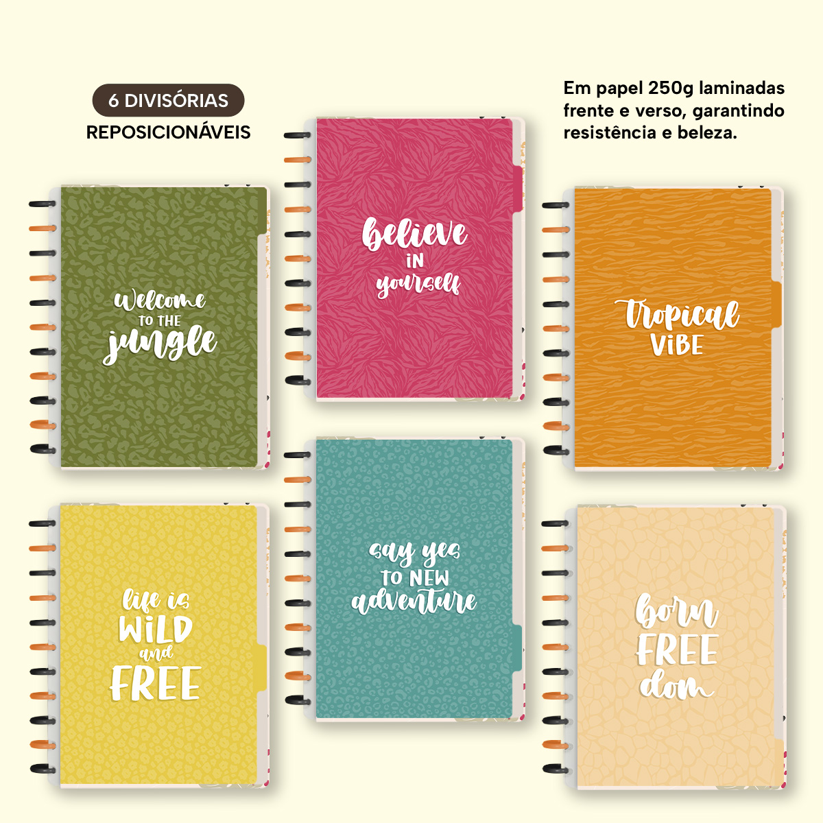 A capa é dura com impressão digital de alta definição, acompanha 6 lindas divisórias que você pode colocar em qualquer local do caderno, funcionando como o guia perfeito para sua organização.