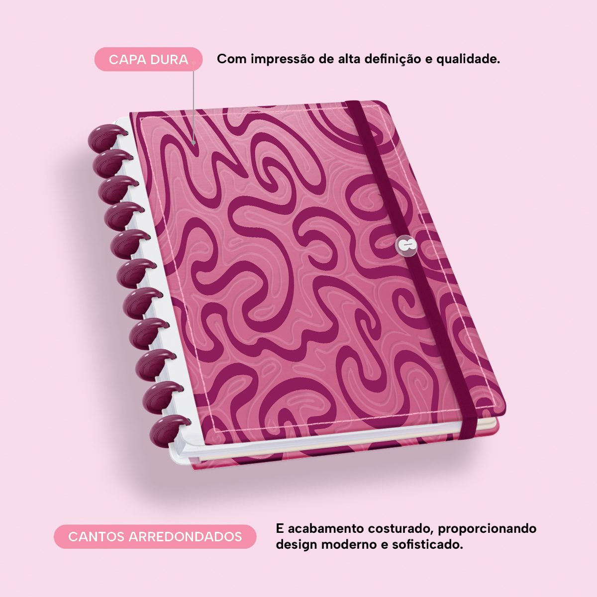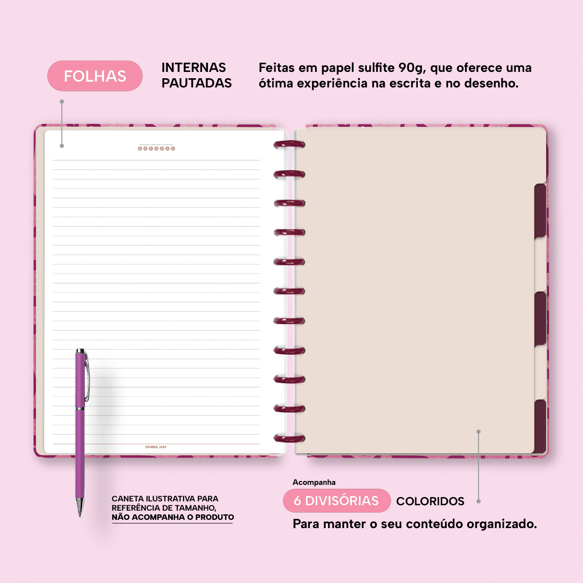 A capa é dura com impressão digital de alta definição, acompanha 6 lindas divisórias que você pode colocar em qualquer local do caderno, funcionando como o guia perfeito para sua organização.