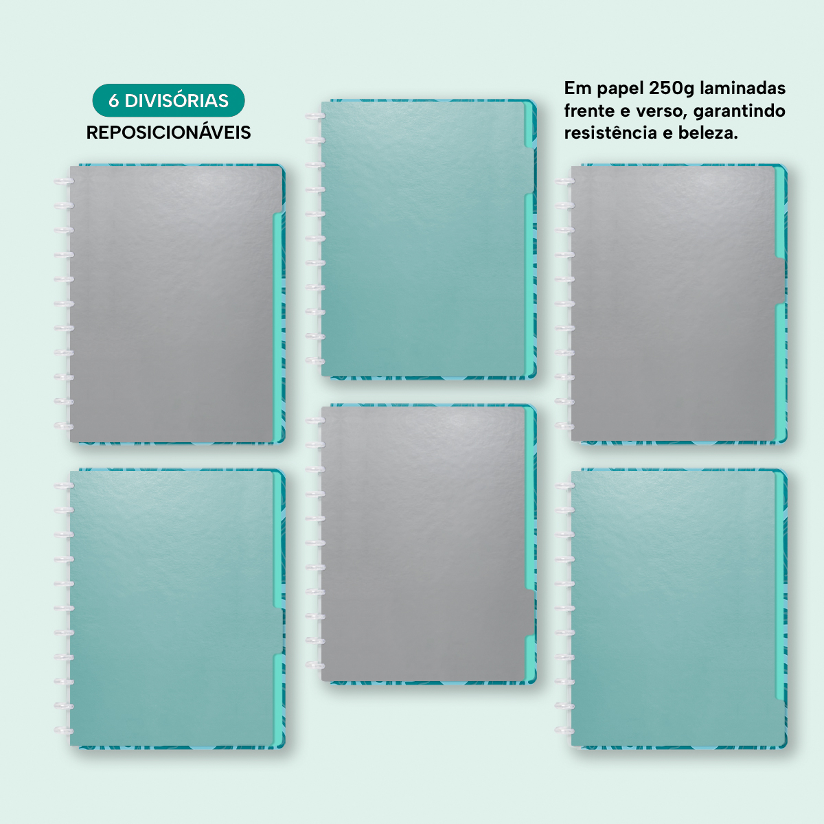 6 divisores laminados (frente e verso) em papel 250g.