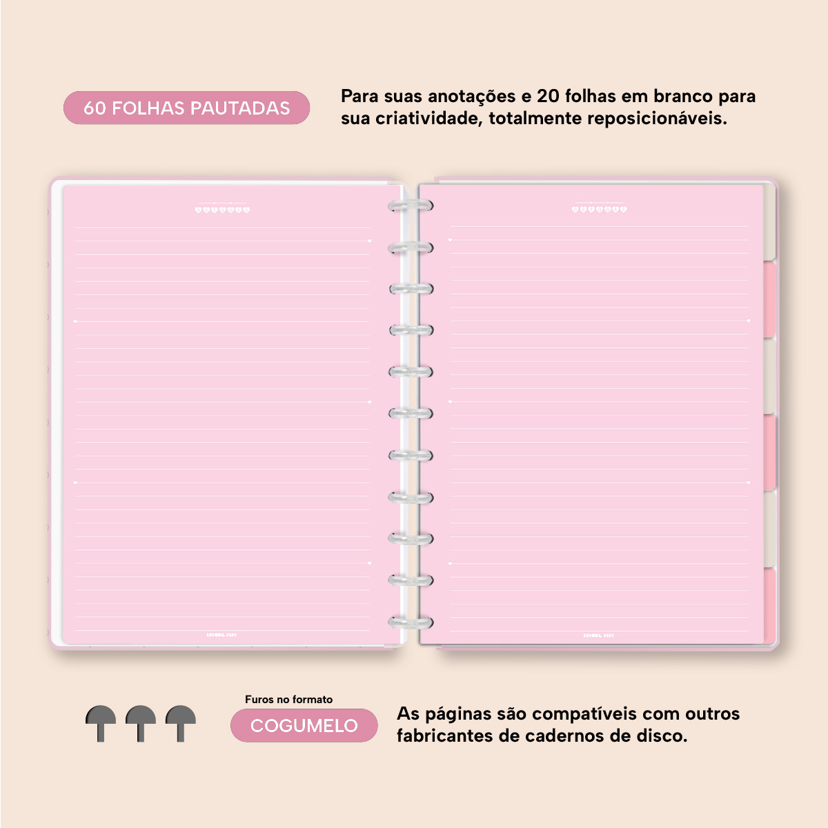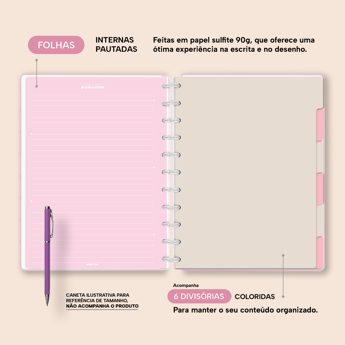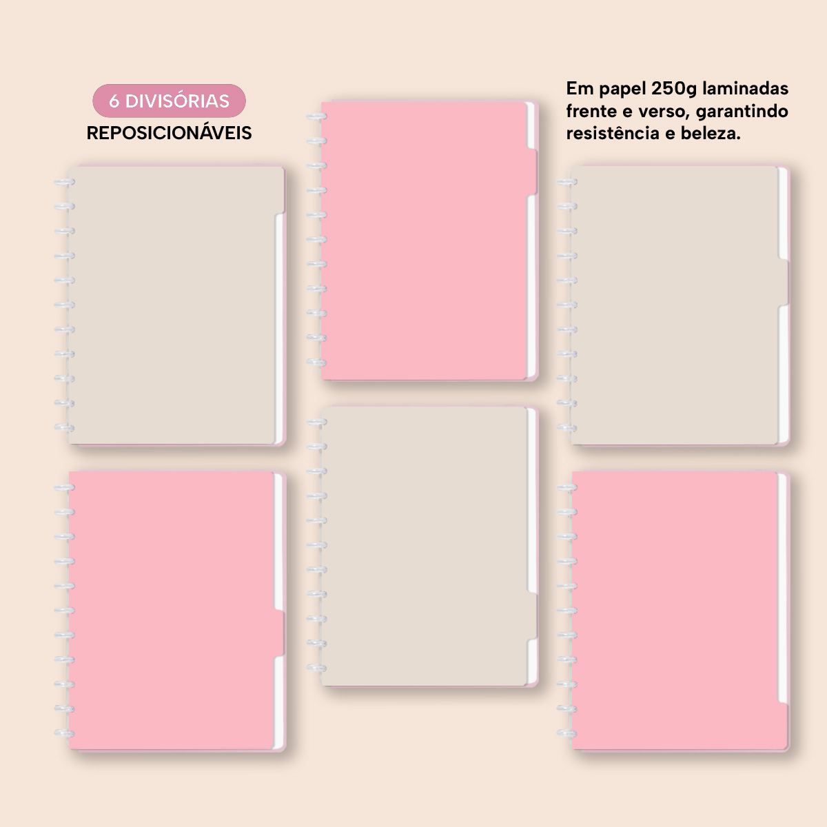 A capa é dura com impressão digital de alta definição, acompanha 6 lindas divisórias que você pode colocar em qualquer local do caderno, funcionando como o guia perfeito para sua organização.
