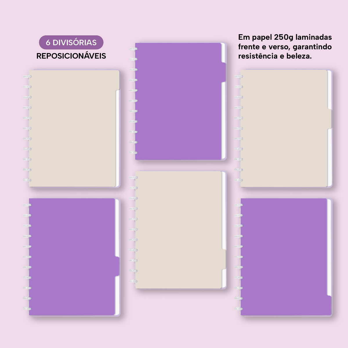 6 divisores laminados (frente e verso) em papel 250g.