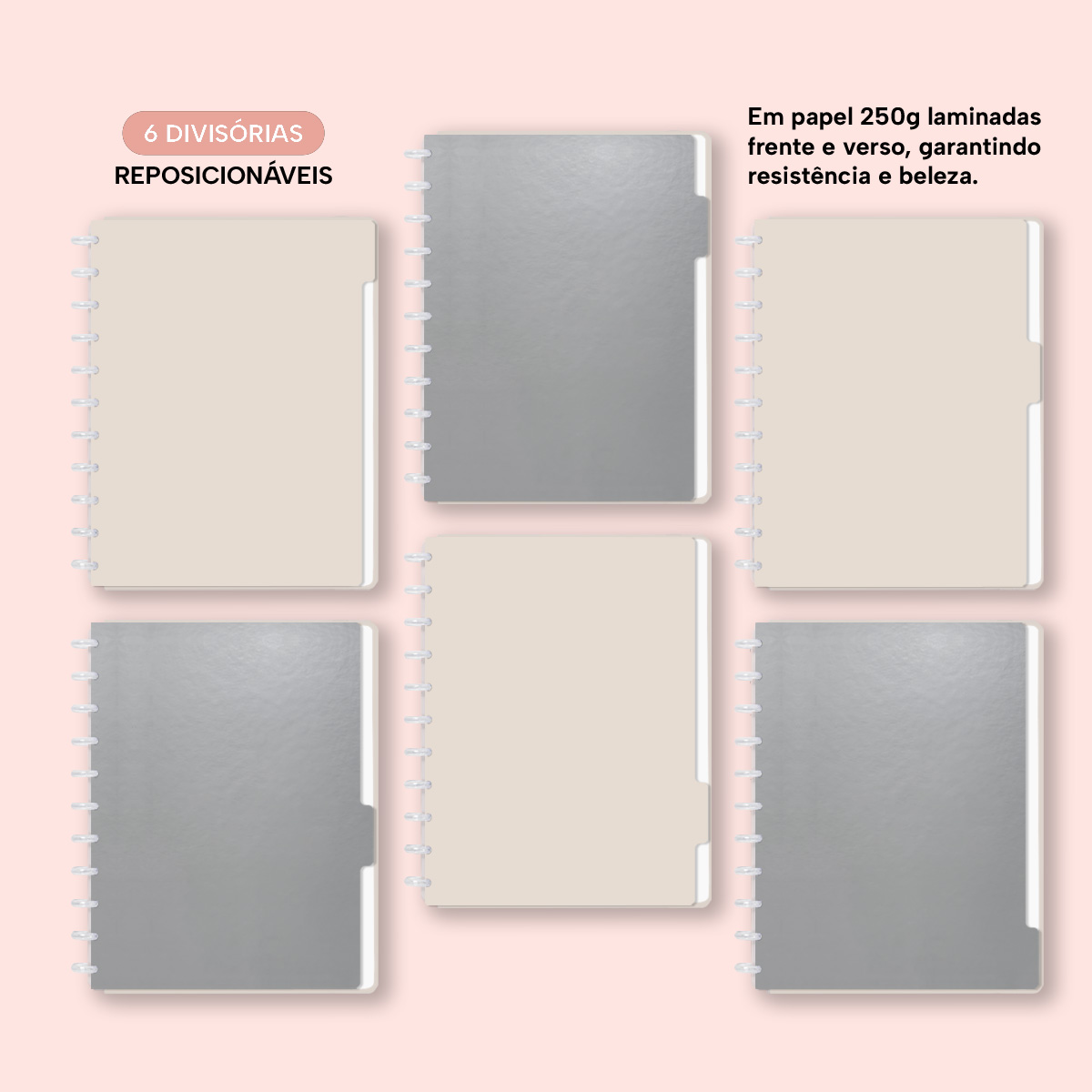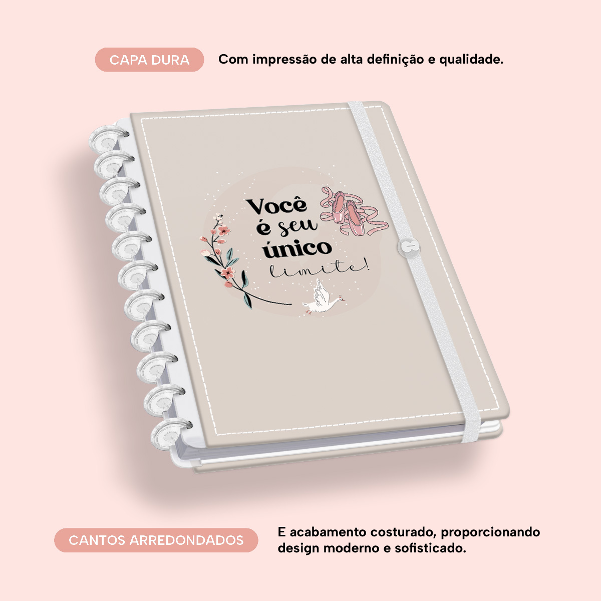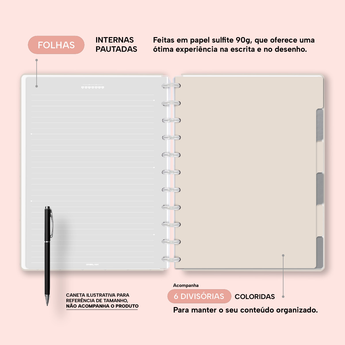 A capa é dura com impressão digital de alta definição, acompanha 6 lindas divisórias que você pode colocar em qualquer local do caderno, funcionando como o guia perfeito para sua organização.