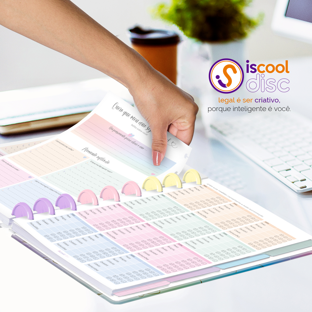 O ISCOOL DISC Planner Permanente foi criado especialmente para ajudar você a alcançar todas as suas metas e objetivos pessoais. É um planner totalmente customizável, no qual os elementos são reposicionáveis. Você pode montá-lo como preferir, deixando sua criatividade fluir livremente.