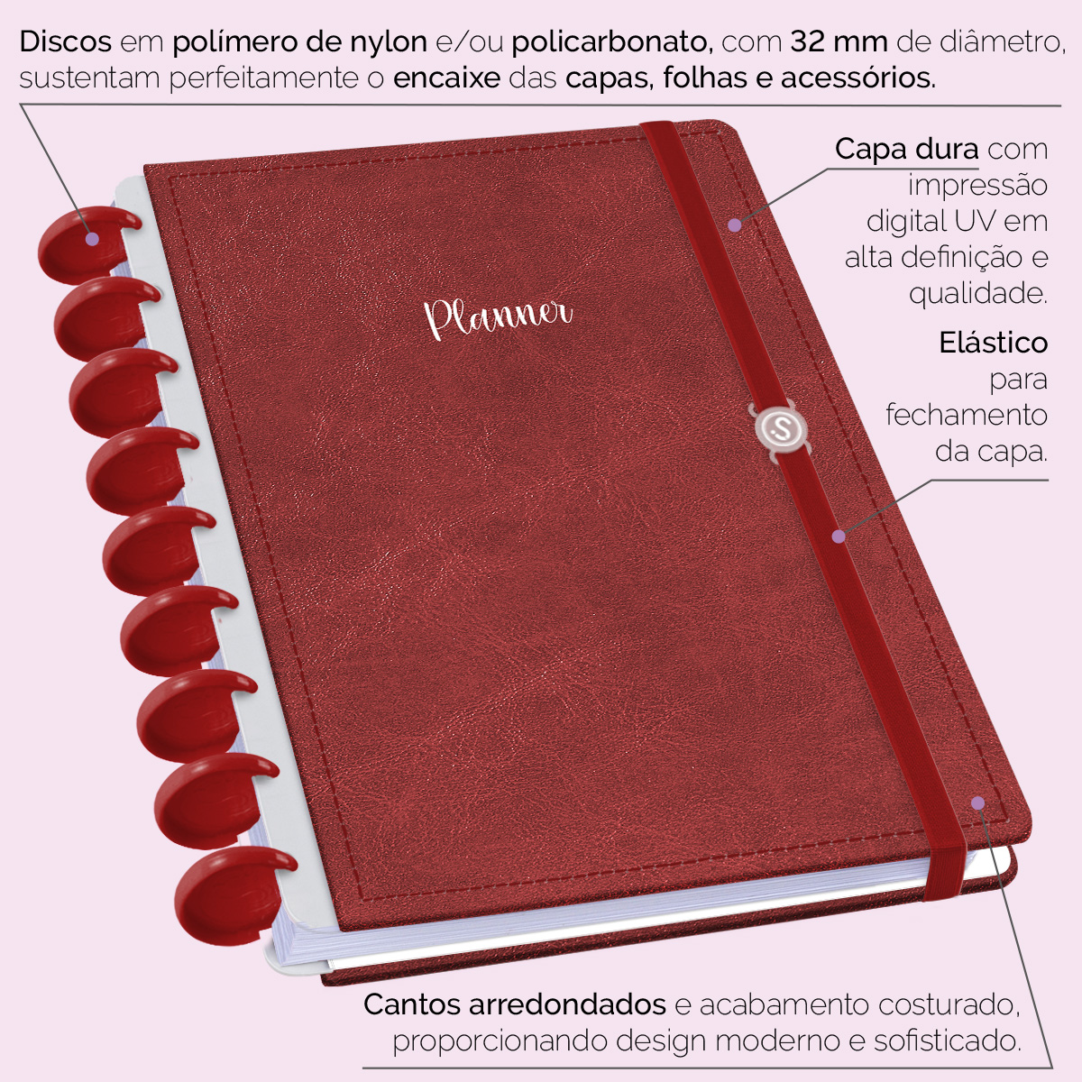 Planner De Disco Iscool Disc Permanente Solid Touch Couro Vermelho