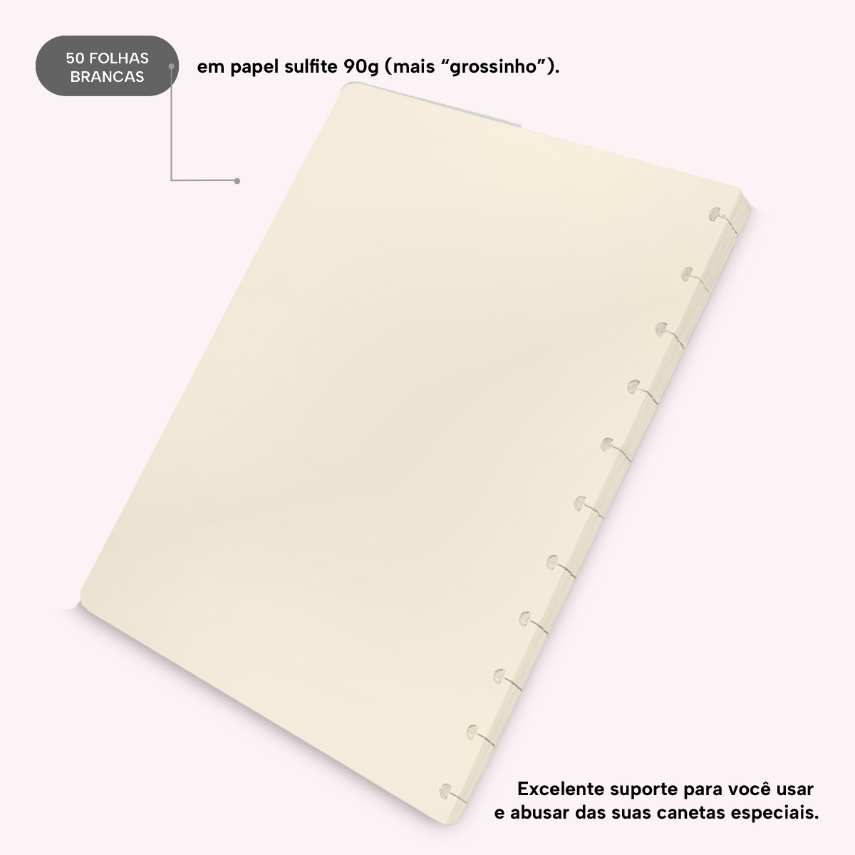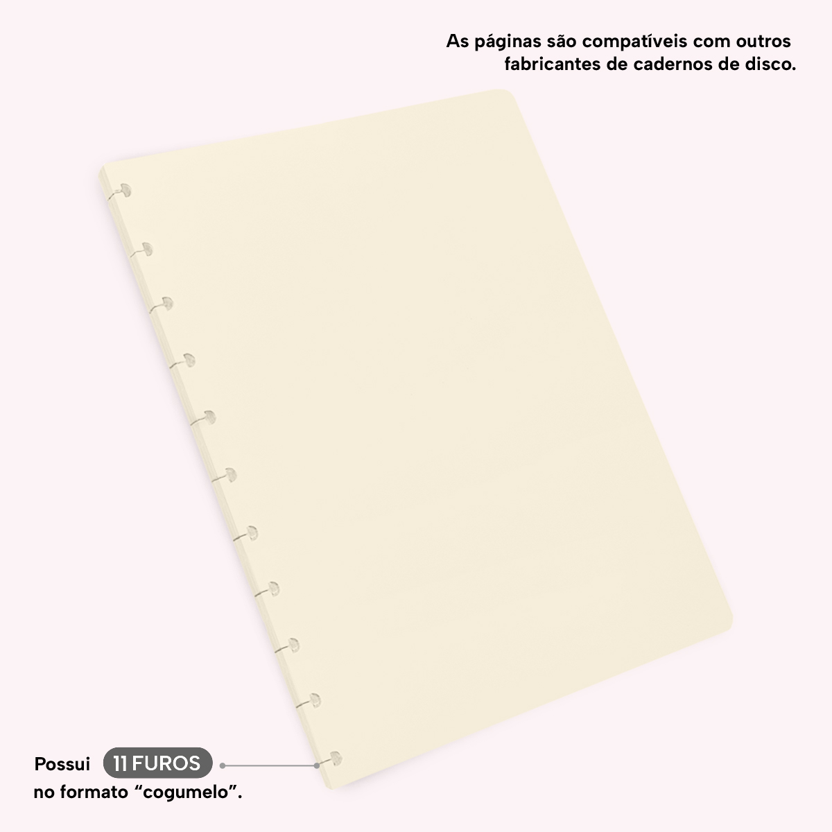 Especificações do produto: - Tamanho das folhas: 20cm de largura por 27,5cm de comprimento. - Quantidade de folhas: 50 folhas brancas, sem pauta com cantos arredondados. - Folhas impressas em papel sulfite/offset 90g off white (“amarelinho”).   Refil ISCOOL DISC Grande 20 x 27,5 cm, 50 folhas, papel 90g. - Compatível com outros fabricantes de sistemas de caderno de disco, inclusive da marca Caderno Inteligente®.   Precisando de mais folhas para dar aquela renovada no seu caderno de discos? Com nosso refil ISCOOL DISC, você garante novas páginas para fazer suas anotações, rascunhos e desenhos sempre que precisar, deixando seu caderno novinho em folha!   Se suas folhas acabaram ou rasuraram, nosso refil é perfeito e 100% compatível com outros sistemas de caderno de discos do mercado, inclusive da marca Caderno Inteligente®.   São 50 folhas brancas, sem pauta no tamanho Grande 20 x 27,5 cm em papel sulfite/offset com gramatura de 90g, o papel mais “grossinho”, deixando rolar solta sua criatividade para utilizar suas canetas mais especiais! As folhas contêm 11 furos em formato de “cogumelo” proporcionando fácil encaixe e desencaixe nos discos, você livre pra montar seu caderno como quiser!   Afinal, com o ISCOOL DISC, o legal é ser criativo, porque inteligente é você! Produzimos cadernos, agendas e produtos de papelaria há mais de 30 anos! Garantimos a qualidade e a excelência do seu produto.