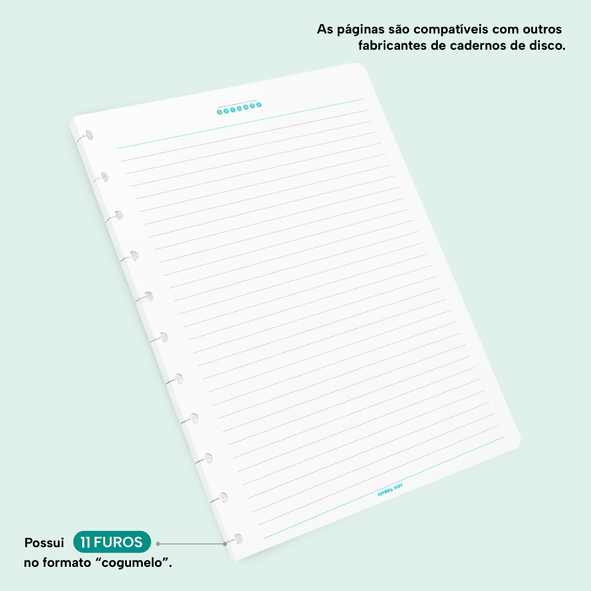 - Compatível com outros fabricantes de sistemas de caderno de disco, inclusive da marca Caderno Inteligente®.