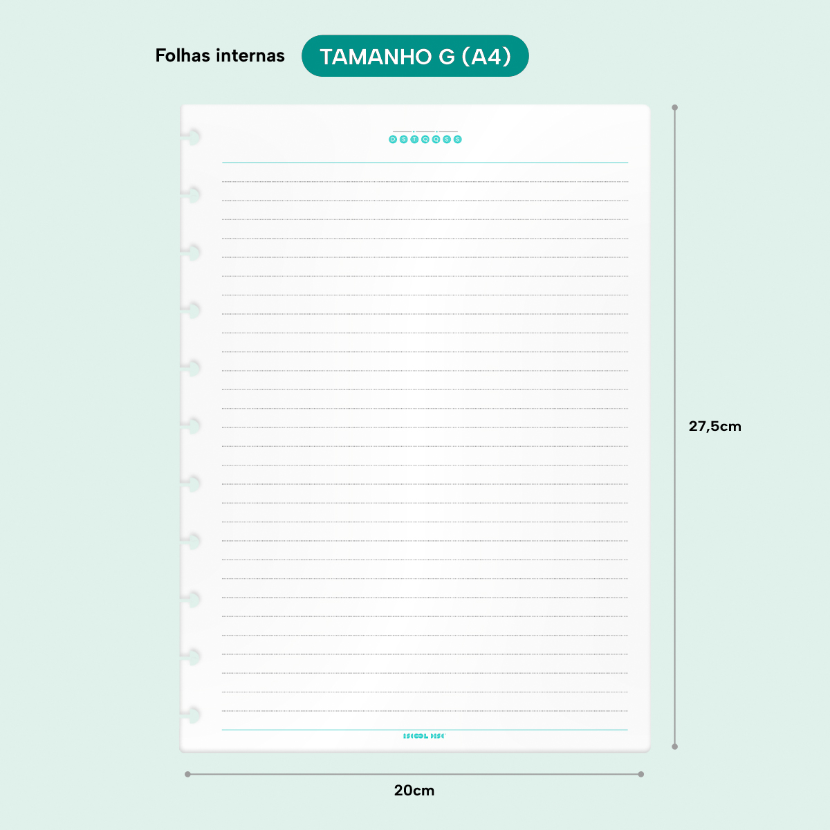 São 50 folhas pautadas no tamanho Grande 20 x 27,5 cm em papel sulfite/offset com gramatura de 90g, o papel mais “grossinho”, deixando rolar solta sua criatividade para utilizar suas canetas mais especiais! As folhas contêm 11 furos em formato de “cogumelo” proporcionando fácil encaixe e desencaixe nos discos, você livre pra montar seu caderno como quiser!