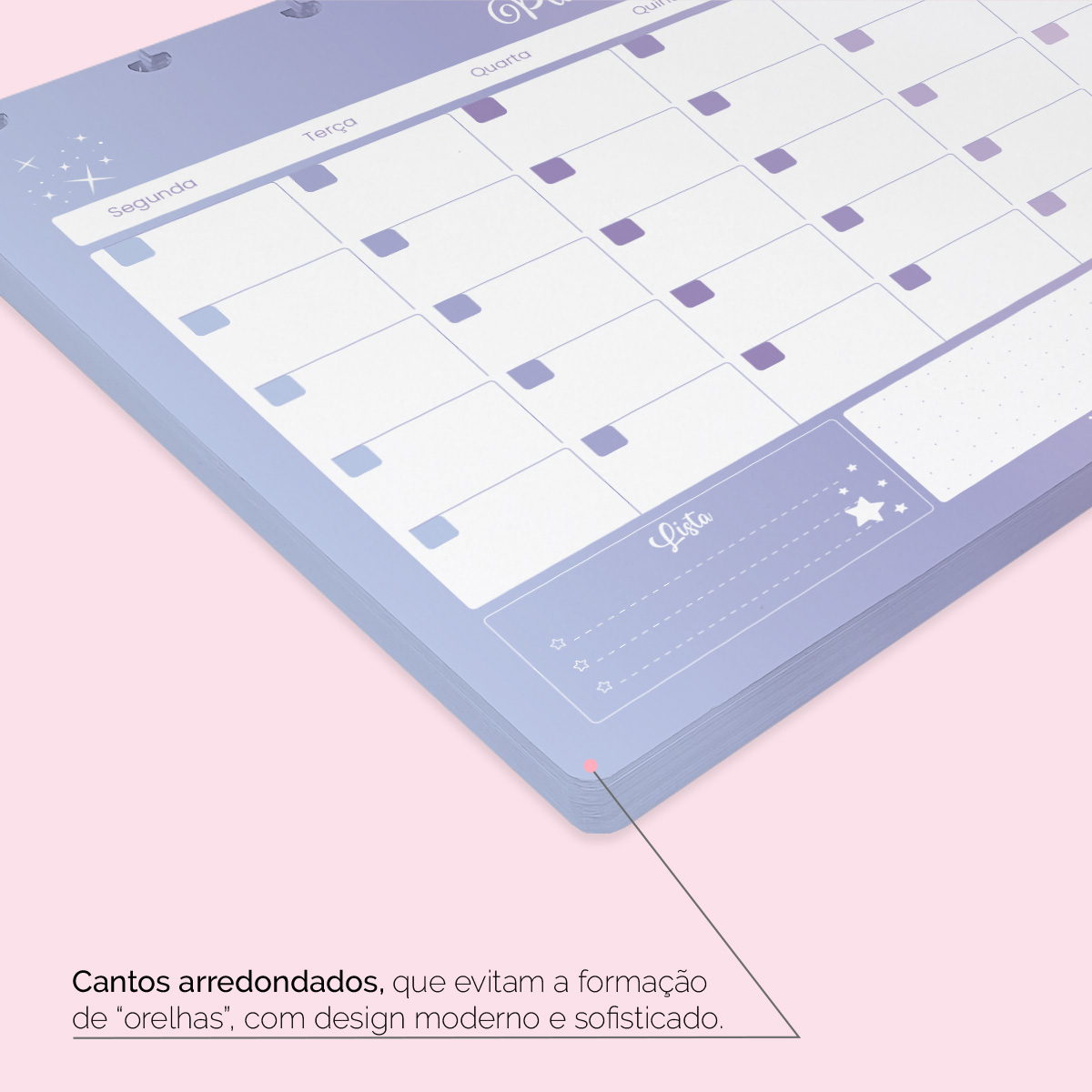 - Quantidade de folhas: 24 folhas decoradas, com cantos arredondados.