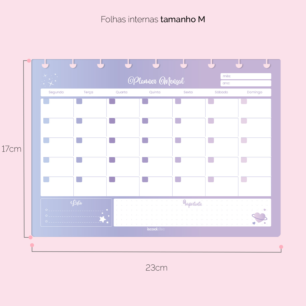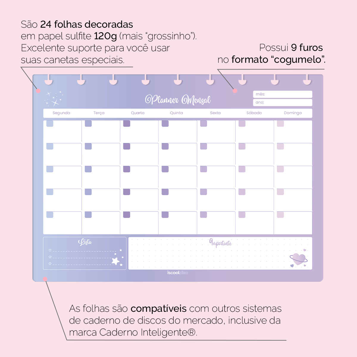 Com o nosso refil ISCOOL DISC Planejamento Mensal Colorido, você garante novas páginas para utilizar seu planejamento sempre que precisar, deixando-o novinho em folha!