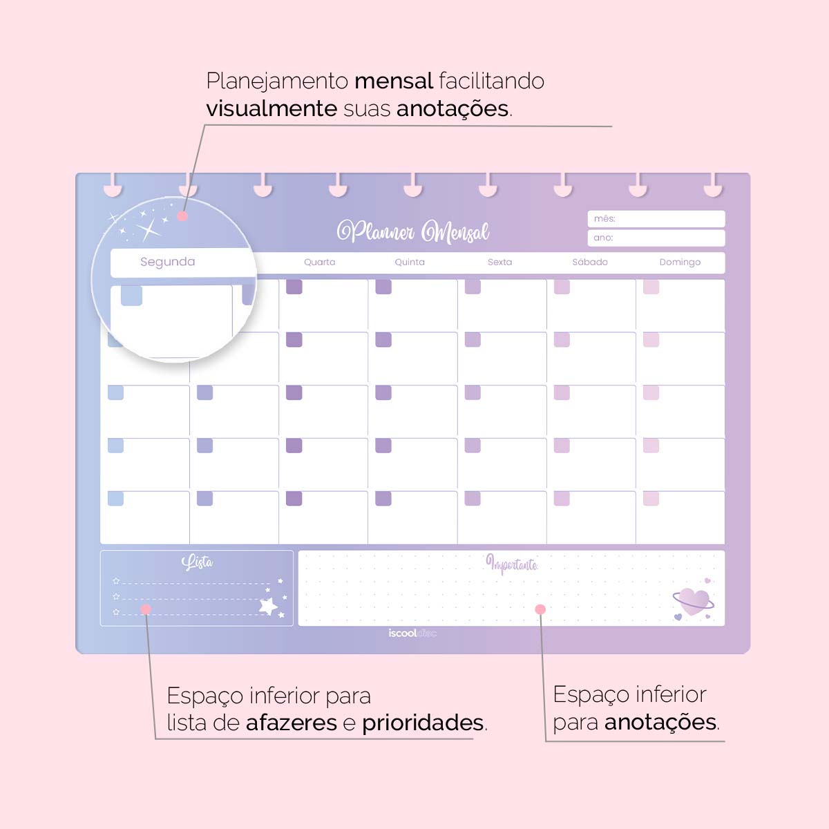 Afinal, com o ISCOOL DISC Planejamento Mensal Colorido, o legal é ser criativo, porque inteligente é você!