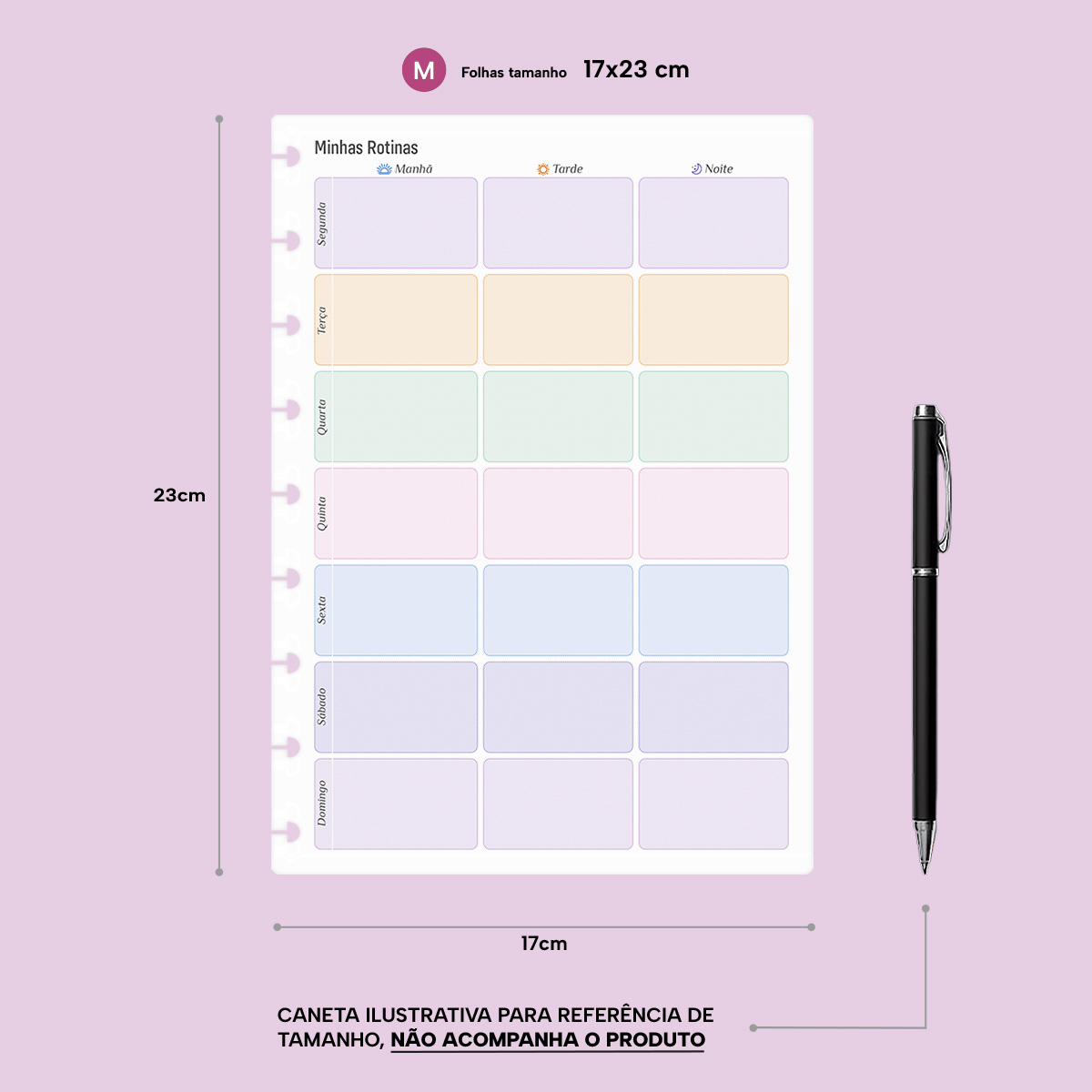 Tamanho das folhas: 17cm de largura por 23cm de comprimento.