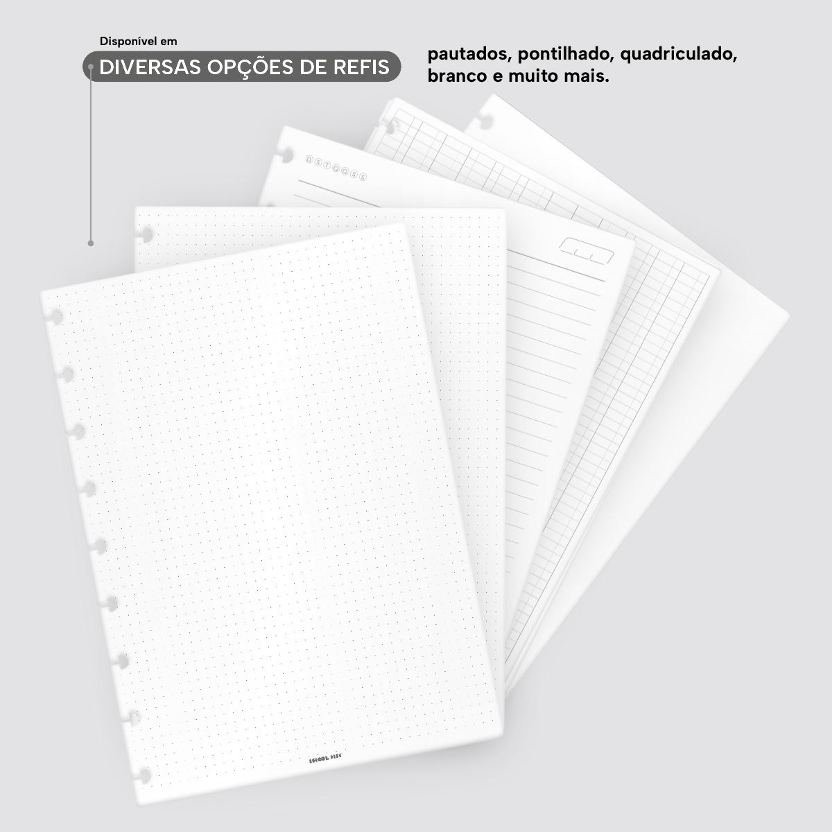 Se suas folhas acabaram ou rasuraram, nosso refil é perfeito e 100% compatível com outros sistemas de caderno de discos do mercado, inclusive da marca Caderno Inteligente®.
