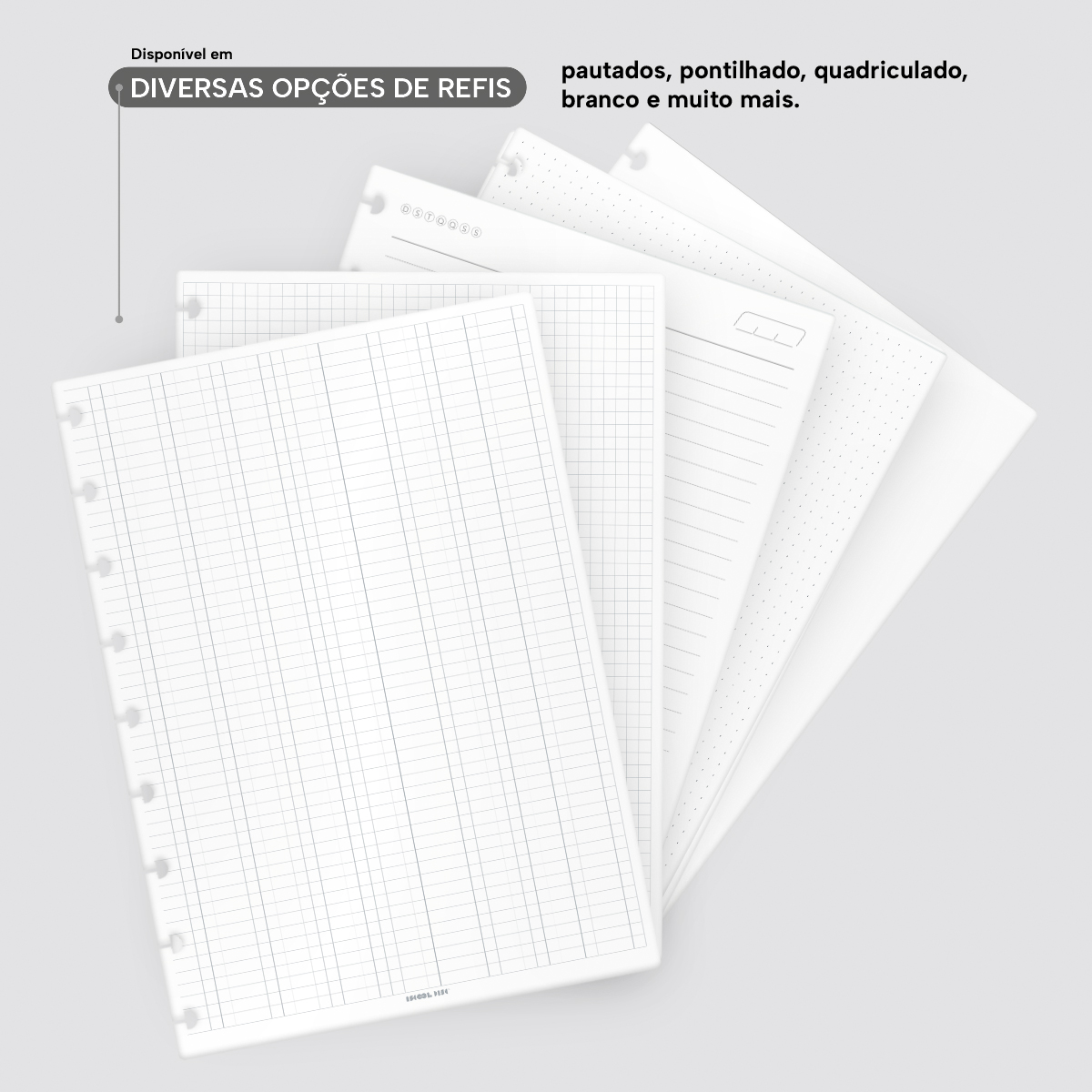 Se suas folhas acabaram ou rasuraram, nosso refil é perfeito e 100% compatível com outros sistemas de caderno de discos do mercado, inclusive da marca Caderno Inteligente®.