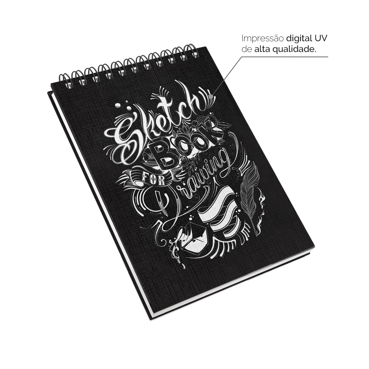A capa dura do Sketchbook é revestida com laminado sintético texturizado, dando assim um toque sofisticado e um visual com estilo único. Ela é impressa com tecnologia UV de alta definição de imagens onde os detalhes são reproduzidos com riqueza e vivacidade!