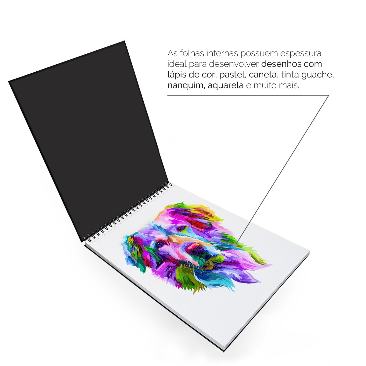 A capa dura do Sketchbook é revestida com laminação BOPP, dando assim um toque sofisticado e um visual com estilo único. Ela é impressa com tecnologia digital UV de alta definição de imagens onde os detalhes são reproduzidos com riqueza e vivacidade!
