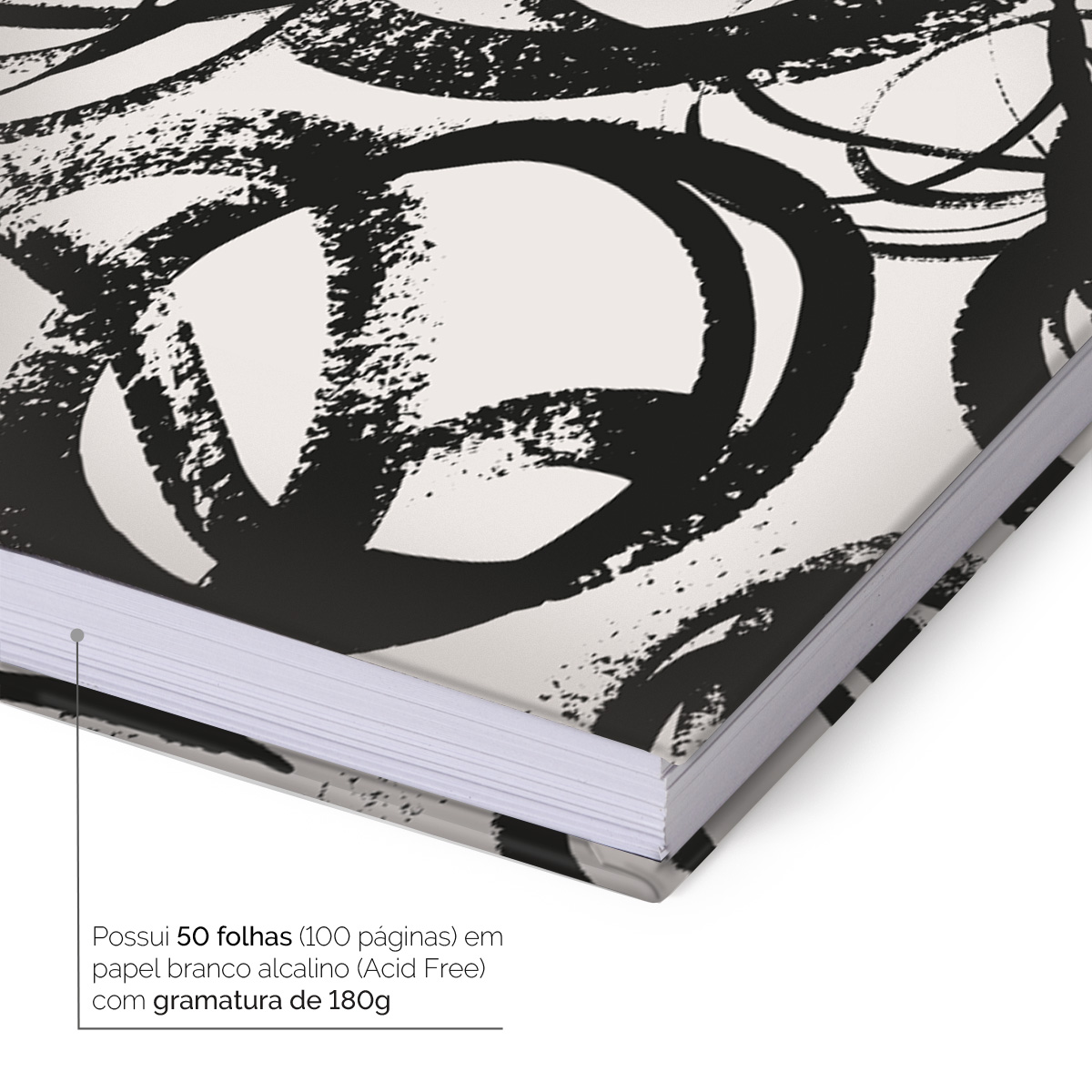 Na medida de 15x21 cm (A5), ele possui 50 folhas (100 páginas) em papel branco alcalino (acid free) e gramatura de 180g/m². As folhas internas possuem espessura ideal para desenvolver desenhos com lápis de cor, pastel, caneta, tinta guache e até nanquim!