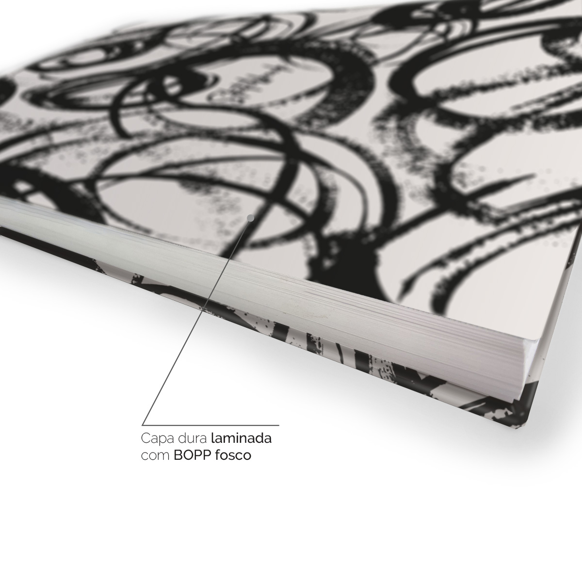 Capa dura com laminação BOPP para proteção.