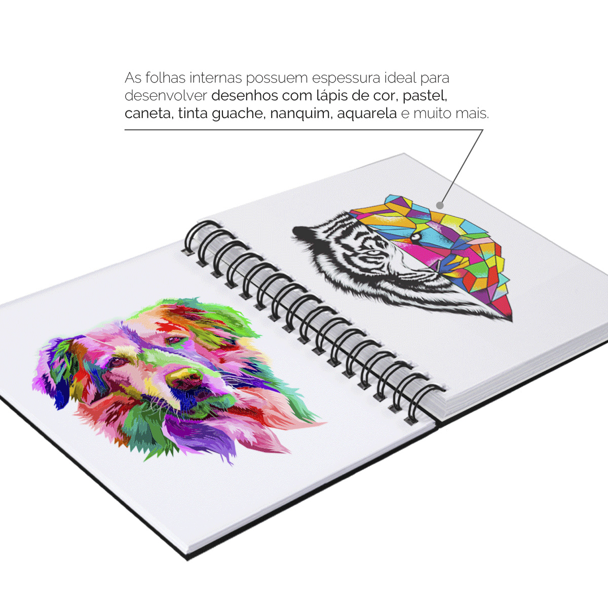 A capa dura do Sketchbook é revestida com laminação BOPP, dando assim um toque sofisticado e um visual com estilo único. Ela é impressa com tecnologia digital UV de alta definição de imagens onde os detalhes são reproduzidos com riqueza e vivacidade!