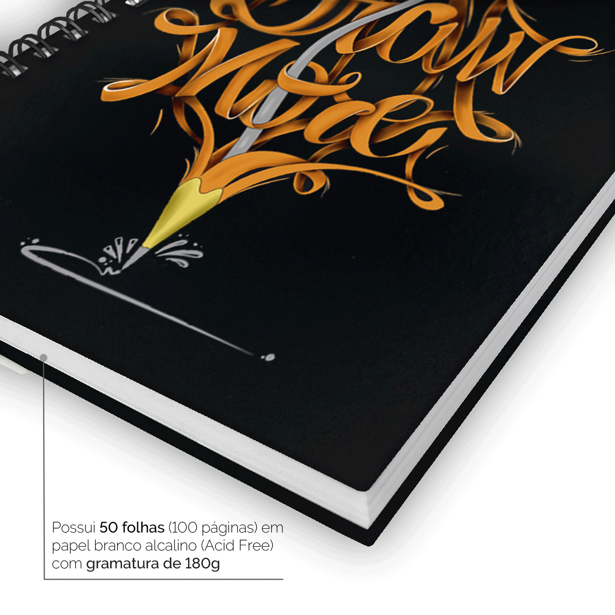 Na medida de 15x21 cm (A5), ele possui 50 folhas (100 páginas) em papel branco alcalino (acid free) e gramatura de 180g/m². As folhas internas possuem espessura ideal para desenvolver desenhos com lápis de cor, pastel, caneta, tinta guache e até nanquim!